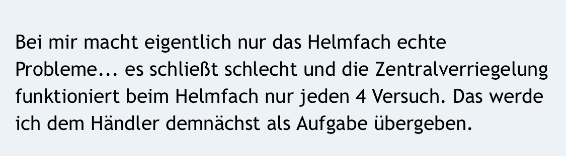 Wenn man den Roller abstellt und das Lenkradschloss direkt abschließt, kann es passieren, dass sich das Helmfach trotzdem noch öffnen lässt.