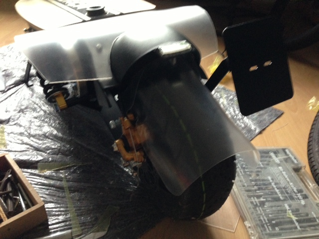 Da tut aber nicht Not mit dem Eigenbau des vorderen Schutzbleches. So etwas hätest Du auch für wenig Geld einfaccher und schneller realsieren können.