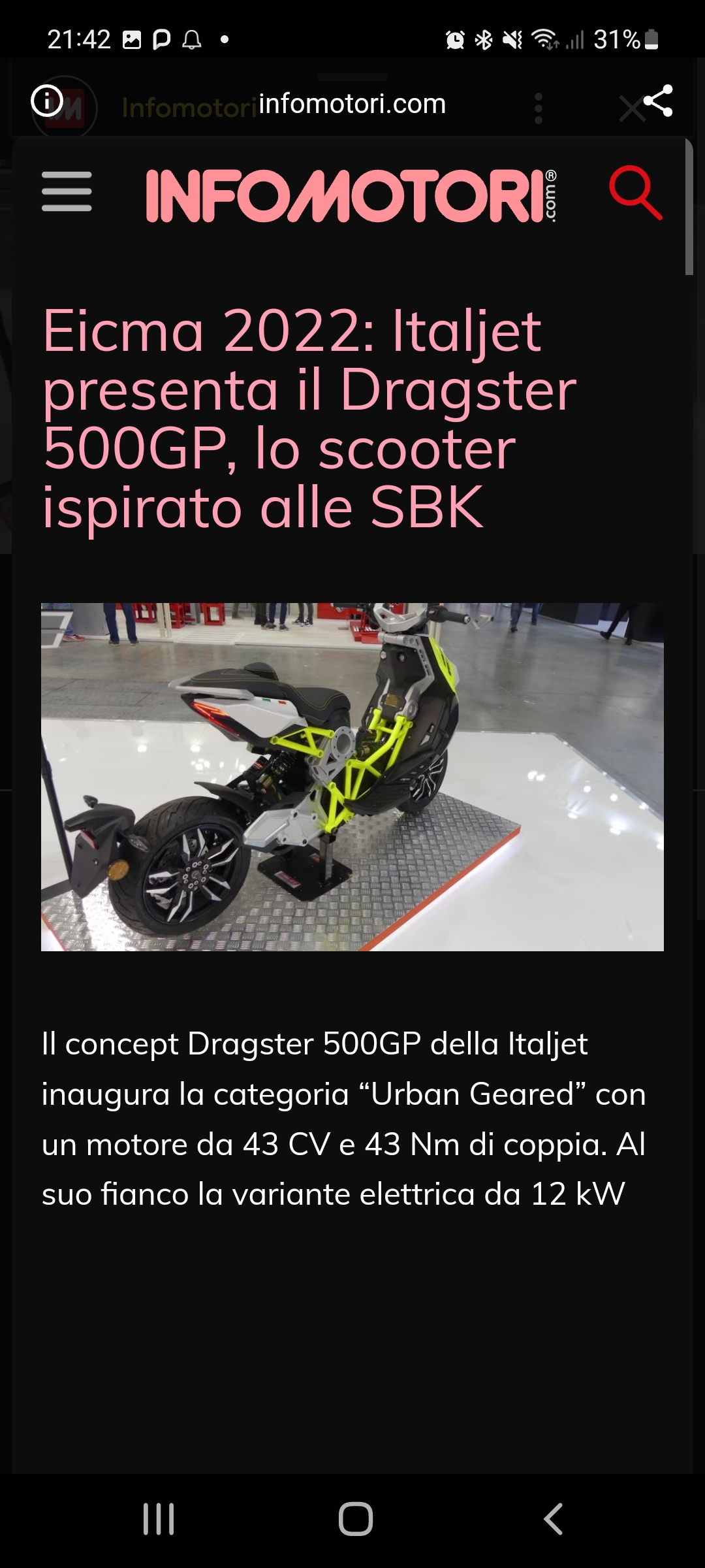 Hat jemand Fotos der rechten Seite, ist es eine Einarmschwinge hinten mit freier Felge? Die Benzinversion ist ja leider mit der EURO 5-Auspufftüte extrem verschandelt. Die Elektroversion sollte da frei sein. Falls jemand die EICMA 22 in Mailand besucht, denkt bitte dran, den Italjet - Stand zu besuchen und ev. Fotos zu machen und zu teilen, falls dort wieder die electric- Version steht!