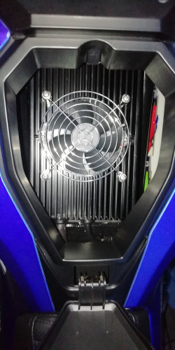 Mein 40A Ladegerät habe ich im Seitenkoffer unterbringen müssen, weil ich nirgendwo sonst ausreichend Platz gefunden habe.