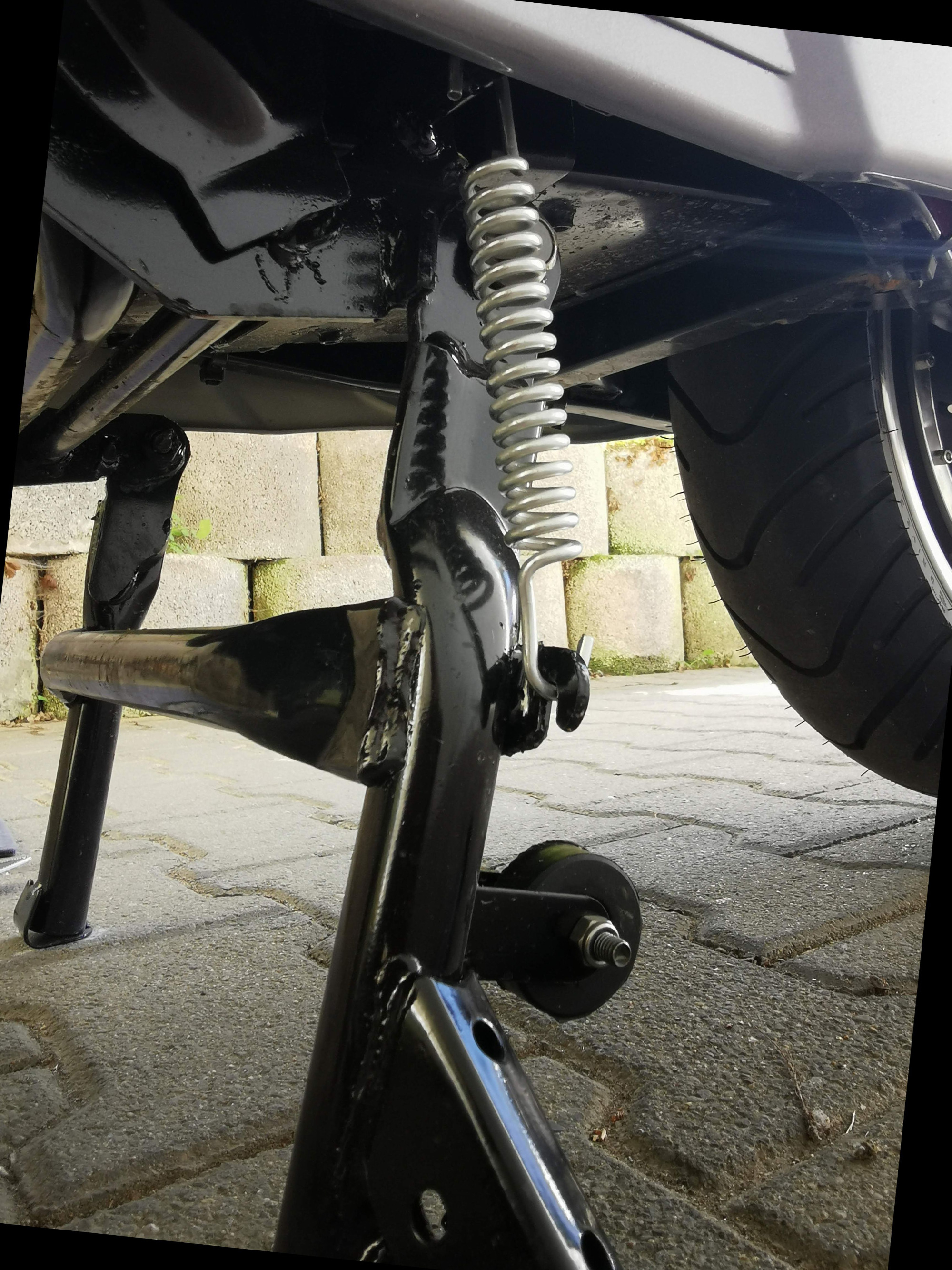 Haupt- und Seitenständer sind solide gebaut und halten auch stabil in eingeklappten Zustand durch ordentliche Federspannung.