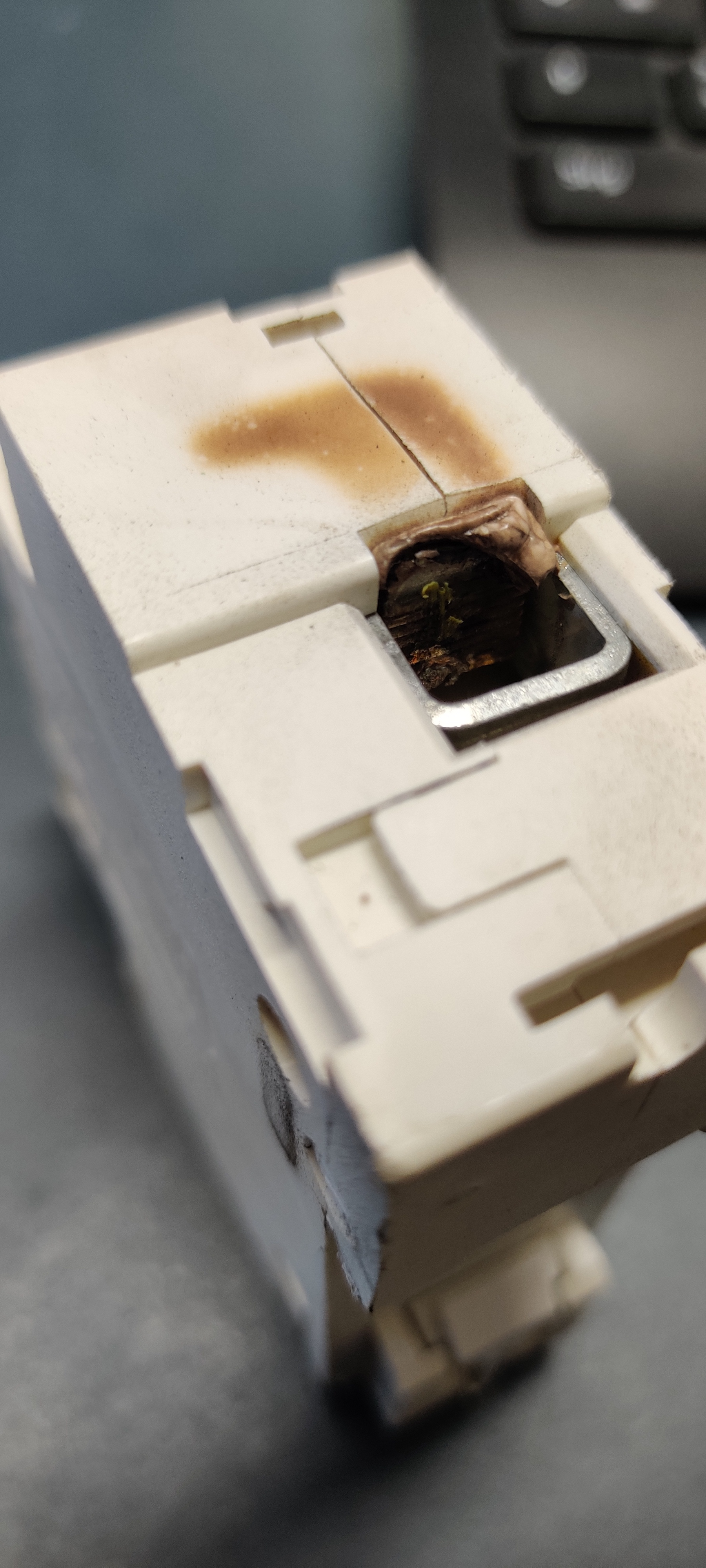 Nee, ernsthaft: das schaut wirklich "nur" nach einem abgerauchten Hauptschalter aus.