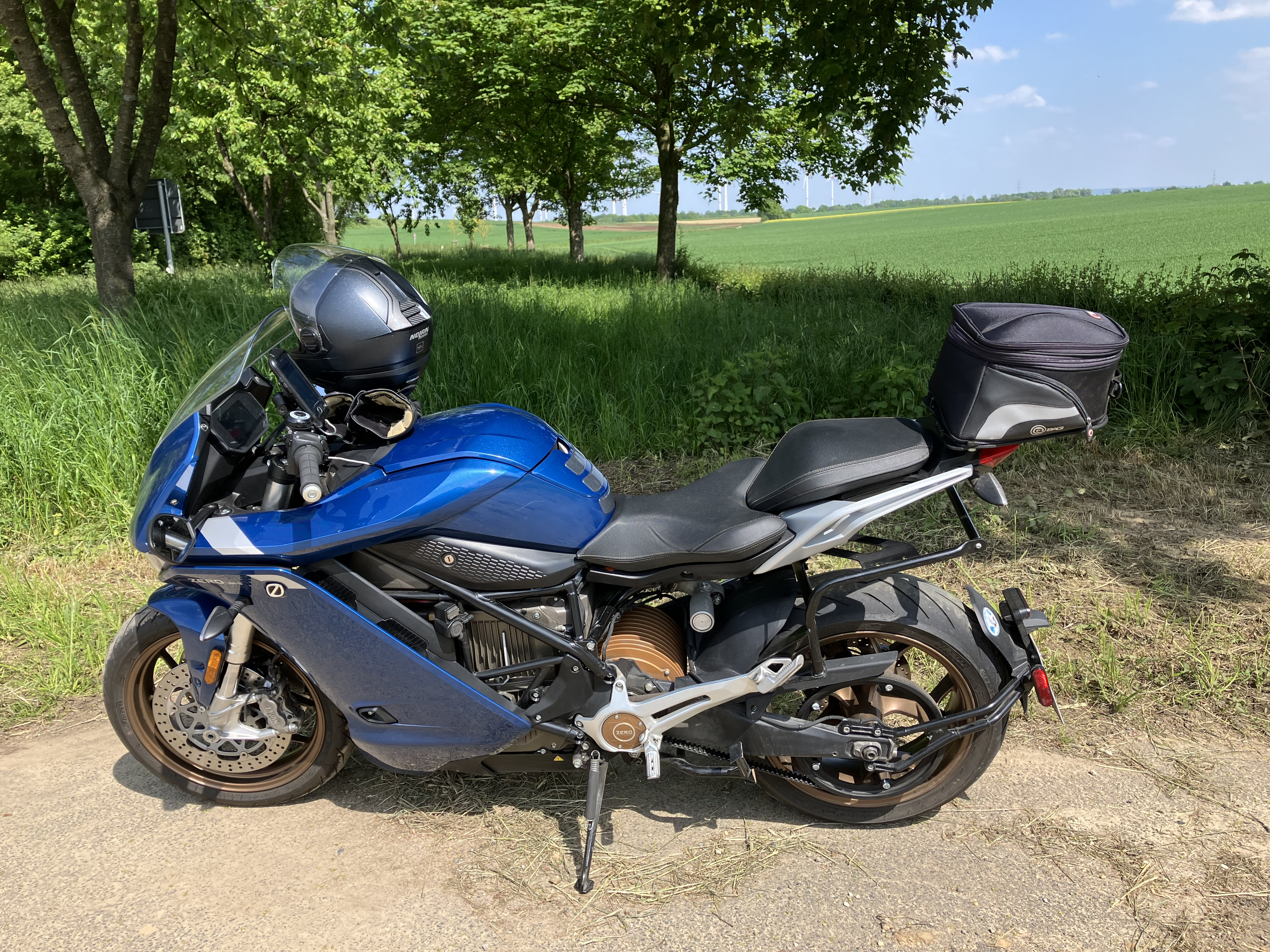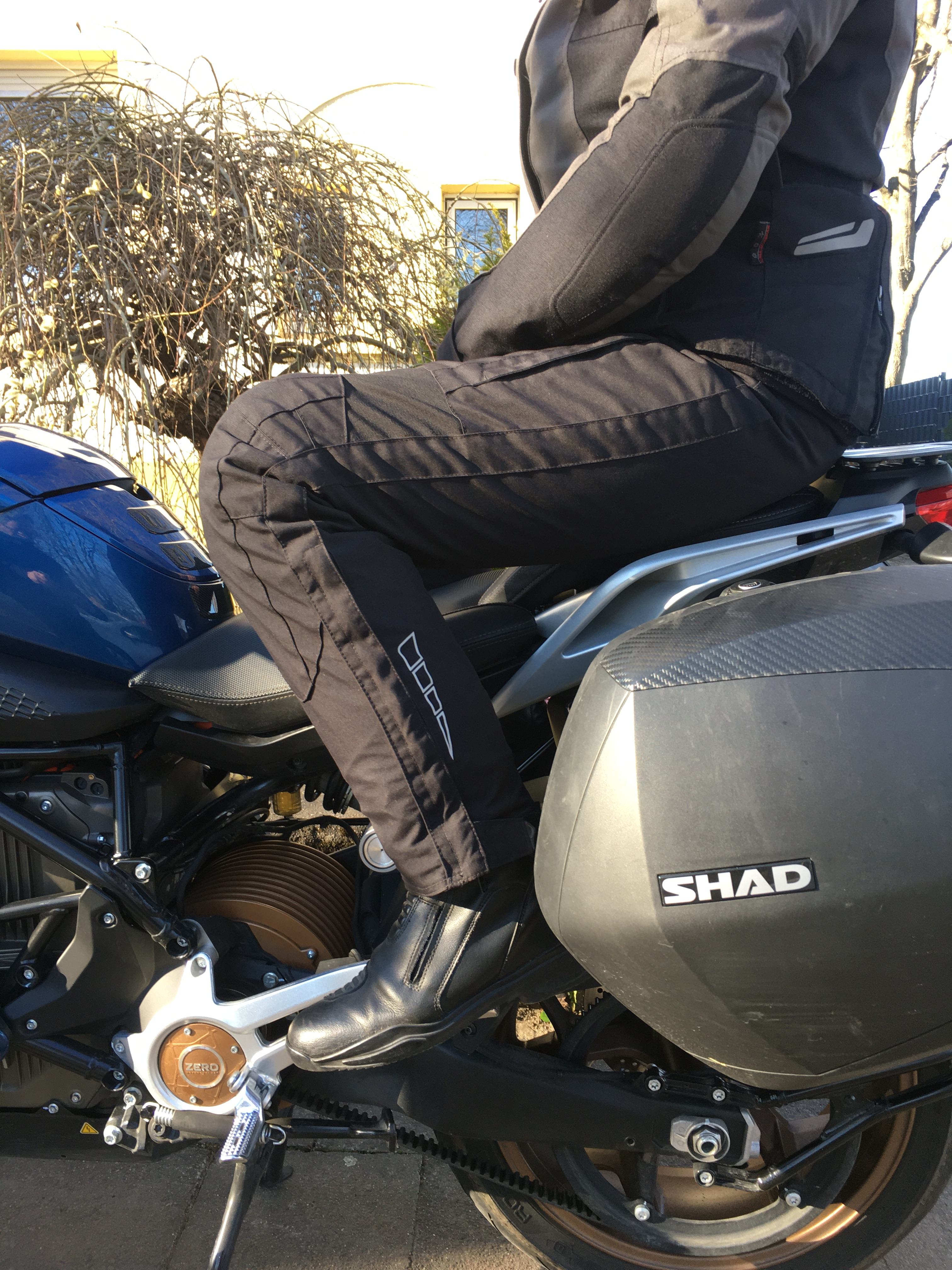 Apropo Zubehör. Ich finde eine Hecktasche unauffälliger als ein Topcase, hier meine Lösung für das Ladekabel bei der SR/S. Ohne Zugriff auf eine Laserschneidemaschine, wurde die Grundplatte für‘s Zero-Topcase benötigt und da eine Hecktasche von QBag drauf gesetzt. Verstellbar in 2 Positionen. Solo oder 2up.