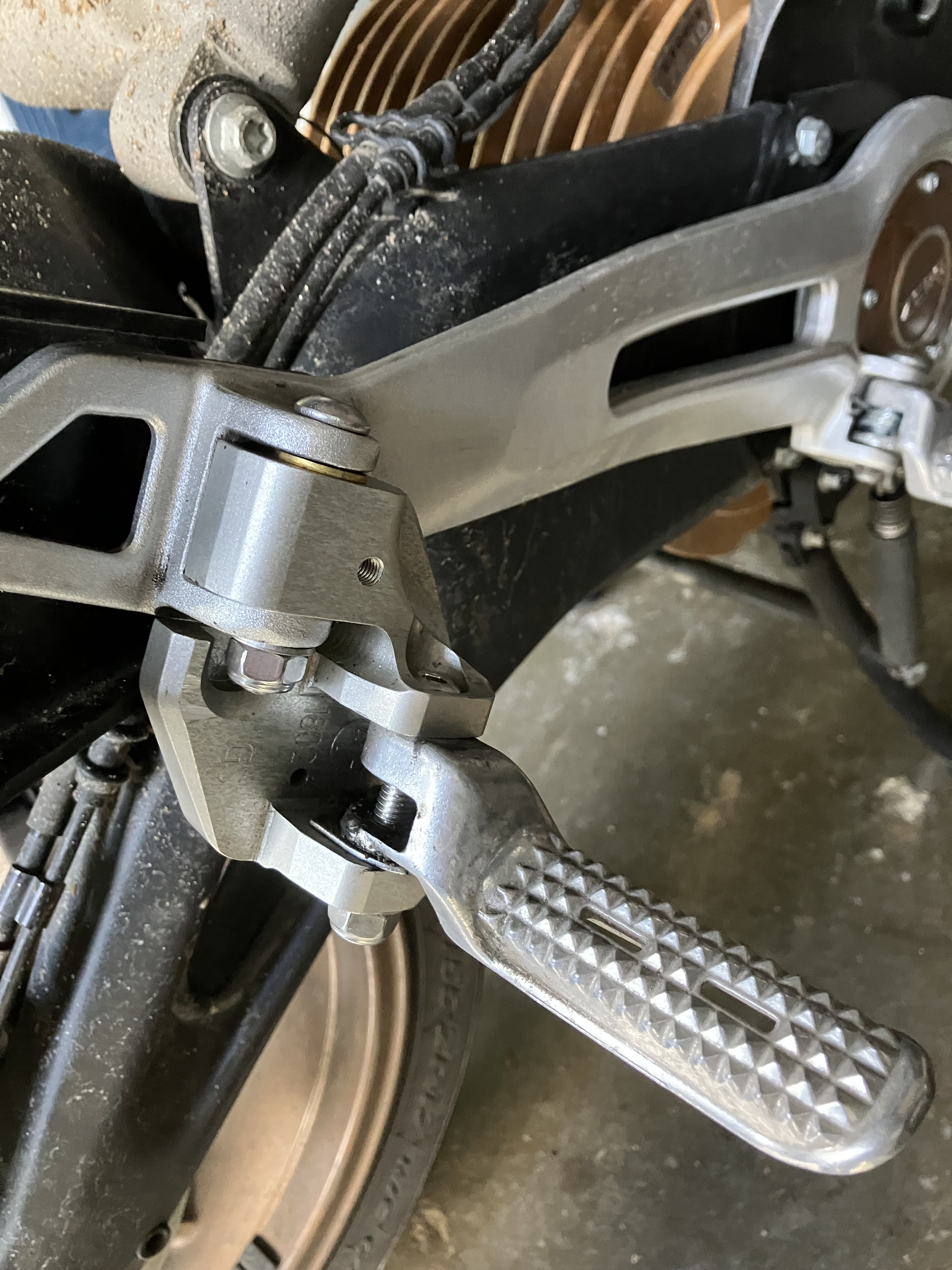 Hab mal die Rasten meiner Sozia tiefergelegt. Die Teile waren ursprünglich für die Fahrerfussrasten der 1150er GS gedacht. Haben sich da als ungeeignet erwiesen.