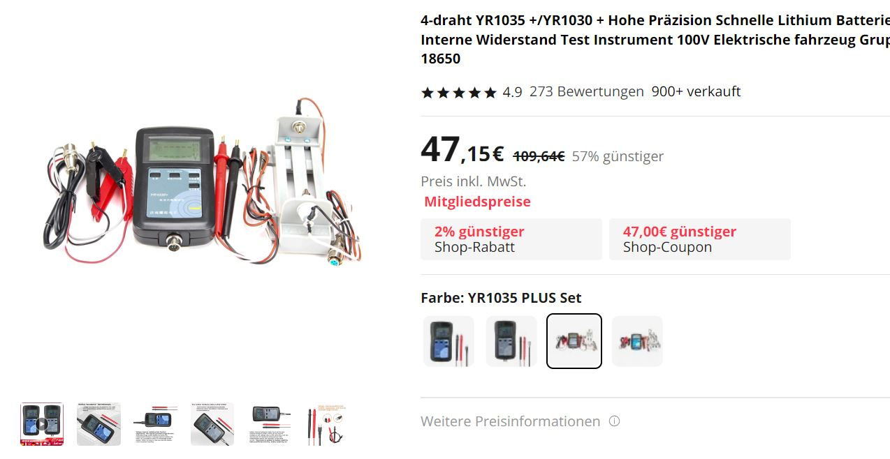 Innenwiderstand ist ein gutes sprichwort. Geht das nur mit speziellen Messgeräten die man auch bei lifepo4 Zusammenbau nutzt? Oder auch normal mittels Multimeter?