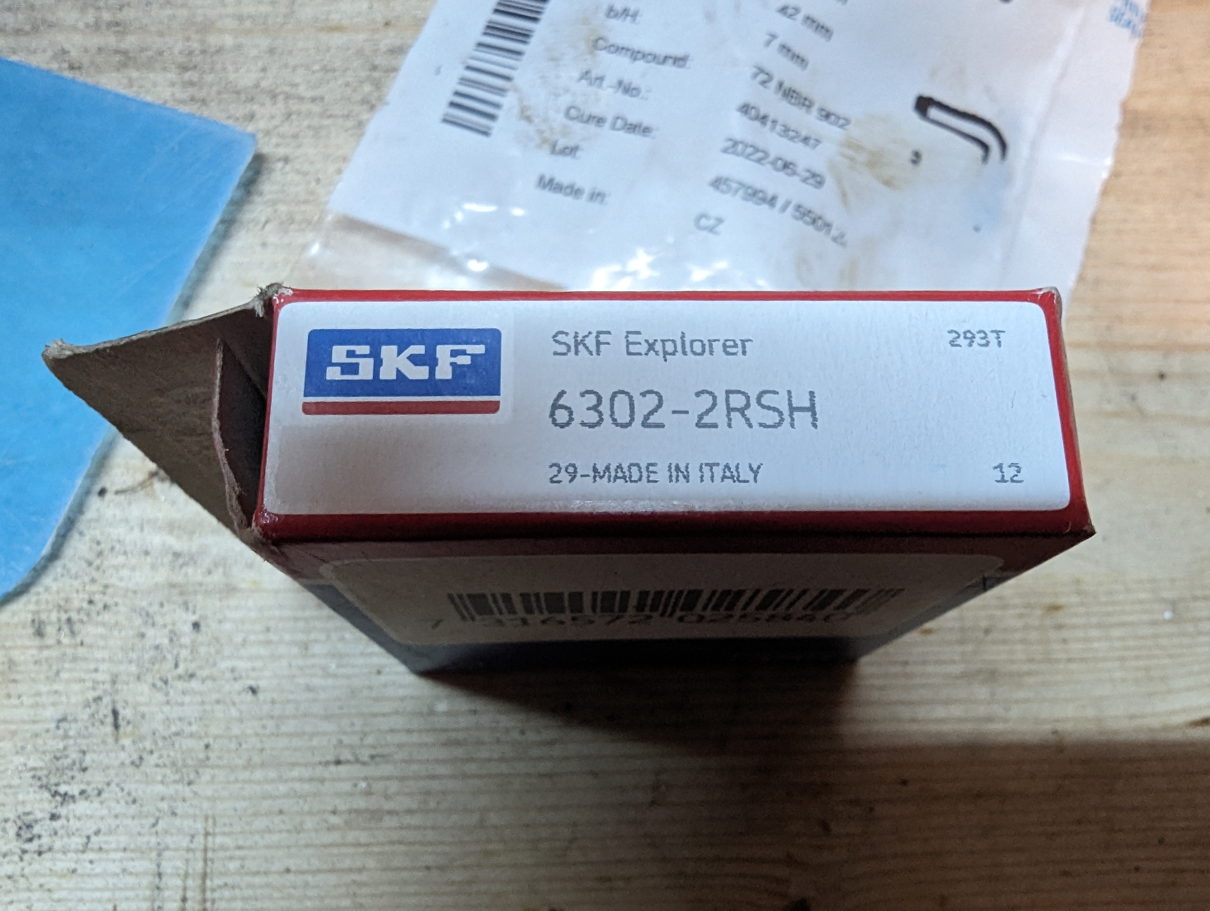 Ich habe dir hier ein Foto von der Verpackung vom Lager gemacht. Weiß nicht genau, ob man daraus die Dimensionen ablesen kann. Zur Not einfach das gleiche von SKF nehmen. Ich würde auch gleich denn Simmering mitwechseln, da der beim Ausbau ev. beschädigt wird bzw. bei mir war er von vornherein schon beschädigt. Die Dimensionen vom Simmering lassen sich von aussen ablesen.