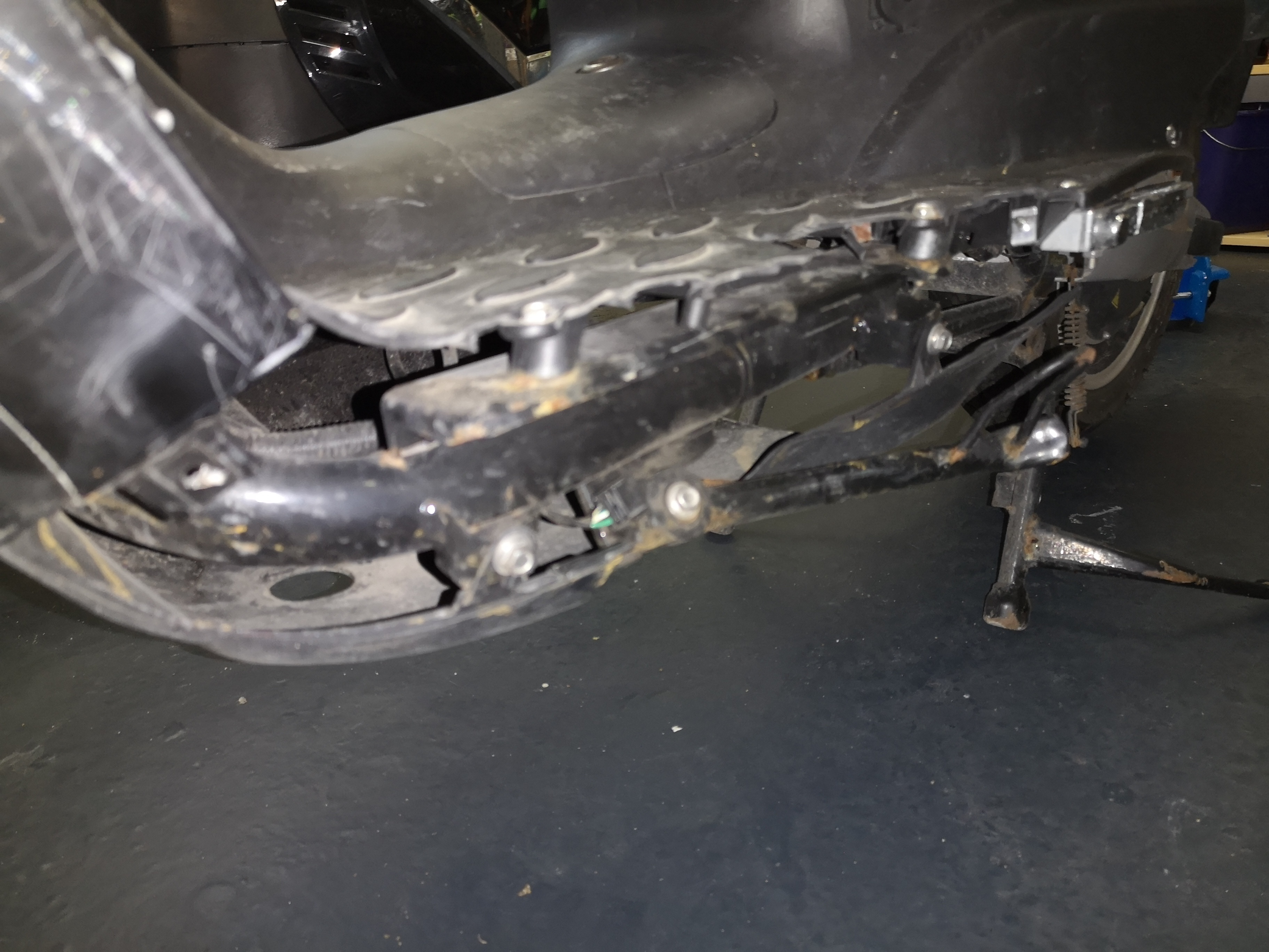 Die (ebenfalls angerosteten) Federbeine 320mm hinten sind progressiv gewickelt, aber das Fahrverhalten ist trotzdem holperig. Ich werde wohl mal mit YSS experimentieren.