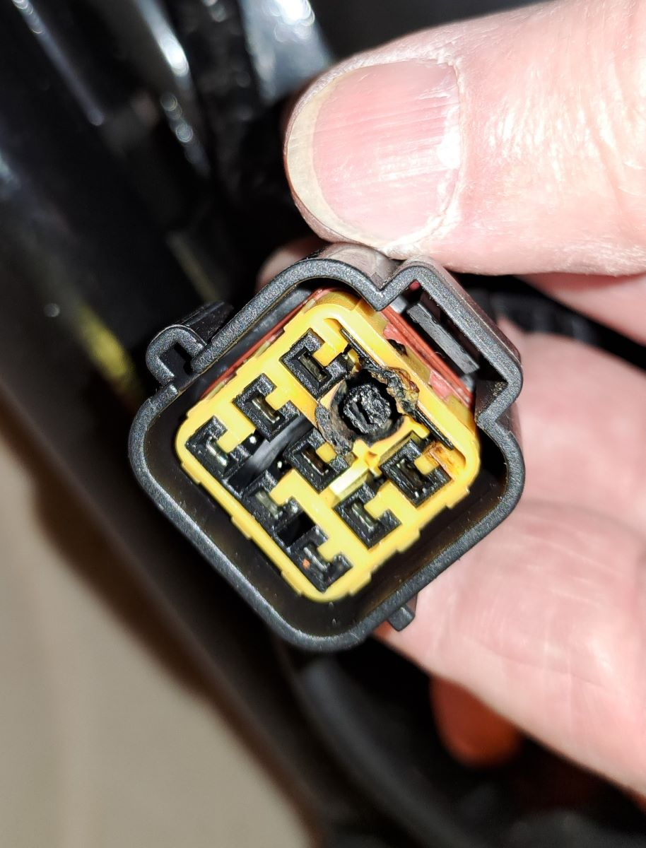 Akkus raus, Akkuwanne raus und der verschmorte Stecker war offensichtlich, wie wäre das wohl ausgegangen wäre ich nicht noch einmal in die Garage ?