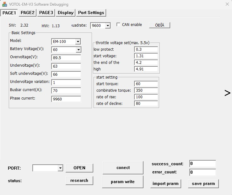 Die Eingenart vom Votol EM100 mit der Akkuspannungs- Voreinstellung ist mir damals auch gleich aufgefallen. Manche haben sogar das Problem, dass der Controller die Werte beim Zündungswechsel trotz angezeigter, erfolgreicher Speicherung nicht übernimmt.