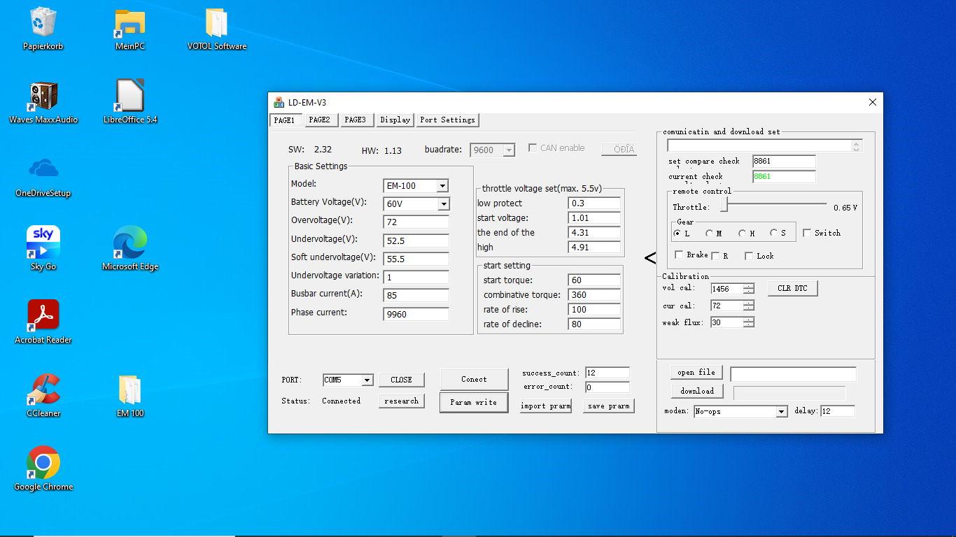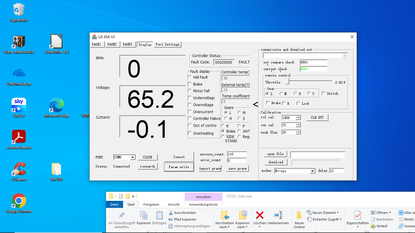 Der Motor läuft mit den jetzigen Einstellungen wunderbar, die Geschwindigkeit die angezeigt wird stimmt auch.