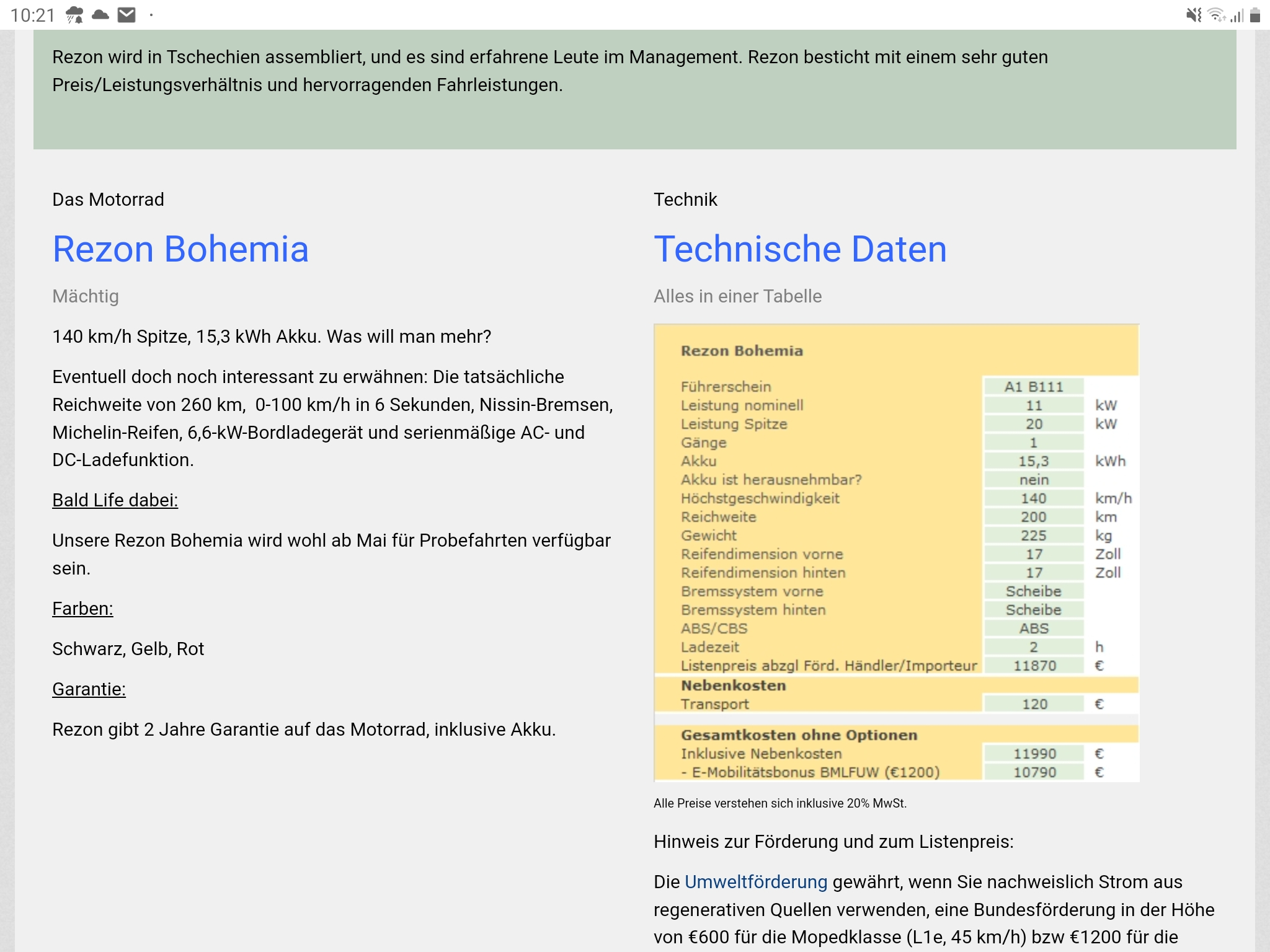 Hab mir mal einen Screenshot erlaubt: vielleicht sollten die Unklarheiten in puncto Reichweite , wenn das Teil gefahren werden kann , auch auf der HP beseitigt werden. Man sieht RW 200km, spricht von echten 260km , die laut Ducatodriver im März auf Tempo 45 km/h eingeschränkt wurden.... realistisch wäre , wenn ich schon soviel ausgeben könnte, käme ich mit ihr zur cousine nach HD in xx std?., also:bikemite hat geschrieben: ↑So 7. Apr 2024, 14:49....