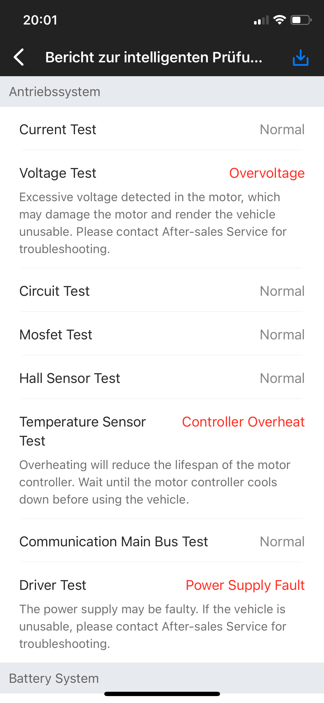 Ich drücke die Daumen, dass im Test mit anderem Akku, der Roller OK ist und nur das BMS im Akku zu tauschen.