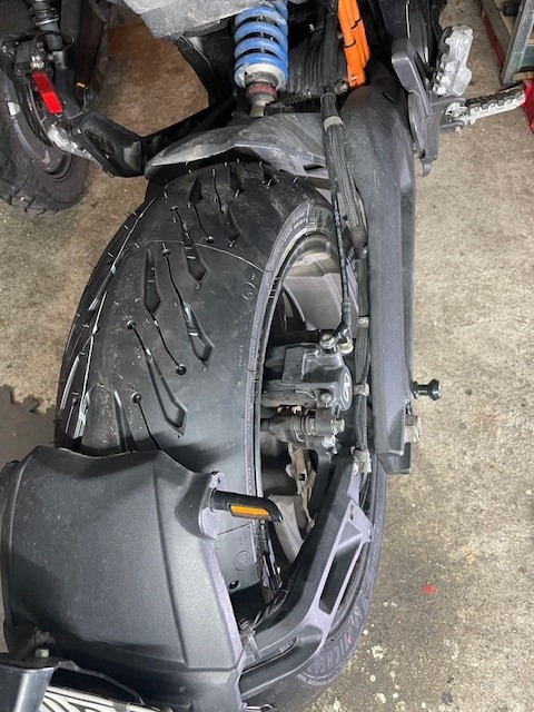 Ist die Bildperspektive links hinten neben der Schwinge? Bei mir geht der Wasserschlauch, dort vom Motor aus, nach vorne. Aber ich kann den frei links / rechts bewegen. Scheint nirgends zu schleifen. Weil das bei mir auch ganz anders verlegt ist.