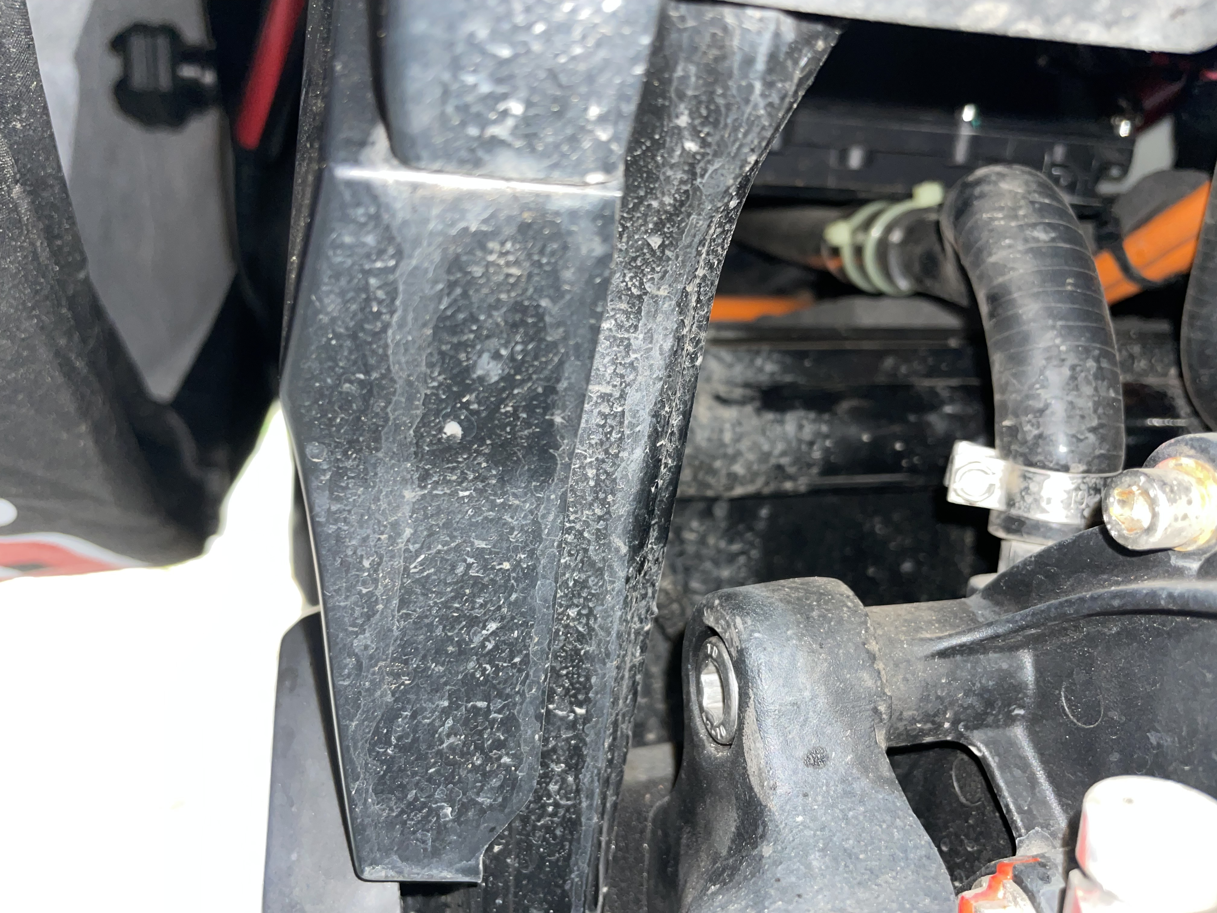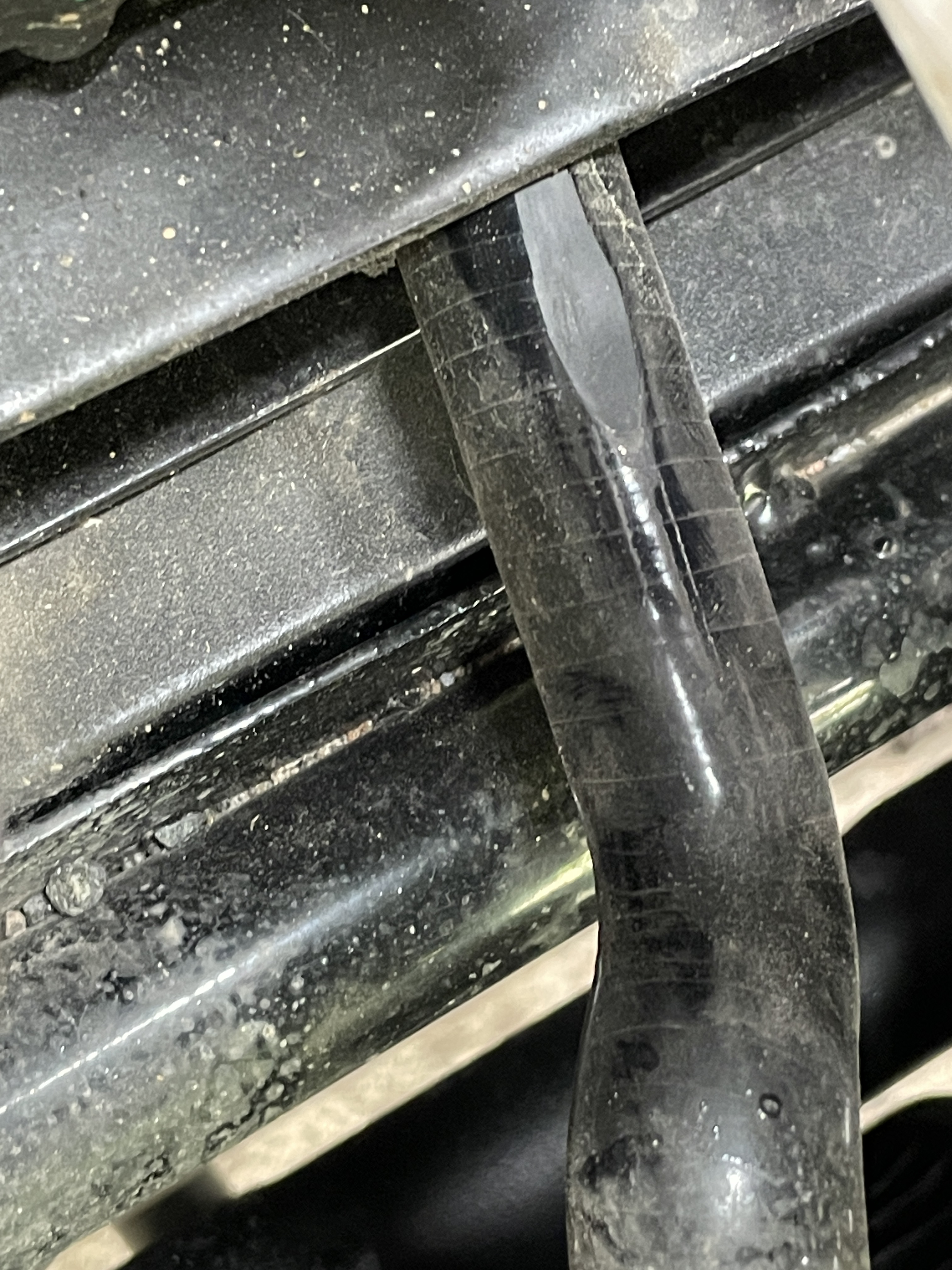 Hier leider das nächste Problem . Der Wasserschlauch vom Motor scheuert am Rahmen .