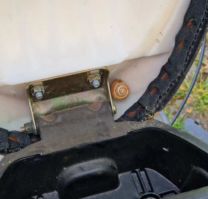 Die ganzen Schrauben im Bereich Schwinge/Motor benötigen ordentlich WD40. Der Trommelbremszug ist noch recht gut. Praktischerweise kann man die Justierschraube für die Trommelbremse immer noch mit der Hand drehen, um diese Nachzustelllen. Bei meinem eSwan und 4600km ist es jetzt tatsächlich so, dass der Bremsheben bis an den Griff gezogen keine Dolle Bremsleistung mehr hat und diese Schraube nachgezogen werden muss. Da die Schraube, wenn man den Trommelbremsarm nach vorn drückt, leicht stärker anziehen.