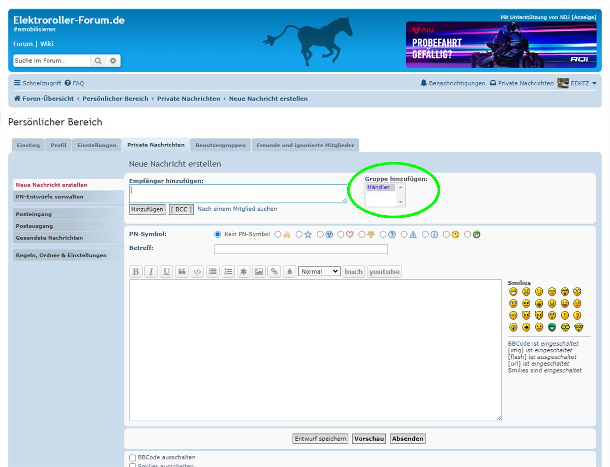du kannst, wenn du händler anklickst, dann auf hinzufügen, eine nachricht an die gruppe händler, bzw. an alle händler markierte hier im board, eine pn zuschicken.