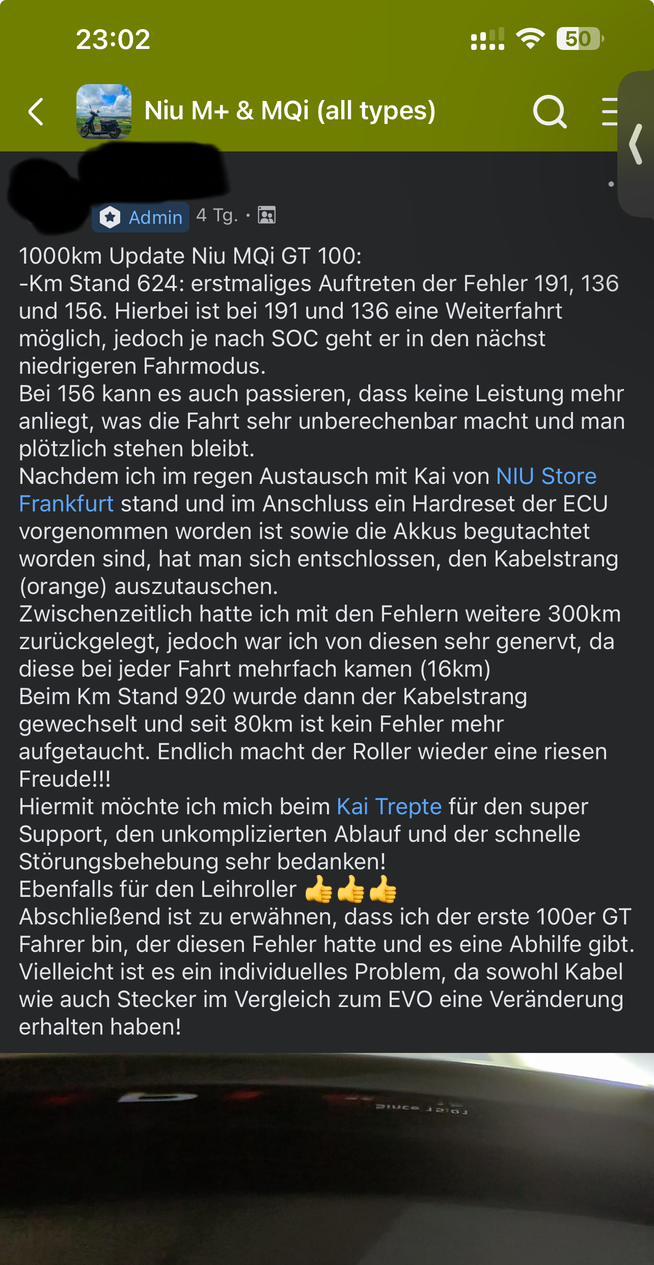 Nur für blöd verkaufen musst du mich nicht , ich kenne schon mal 3 Fahrer die mehr Probleme mit dem 100 Km/h Roller von NIU haben.Als ich letztes Jahr so ein Teil Probe Fahren wollte hat der Händler die Roller nicht zum Laufen bekommen, bei allen dreien war die kleine Batterie leer. Ein wenig nachlesen im Forum hilft auch, wenn die Nius so toll sind , warum ist dann der Importeur insolvent ?