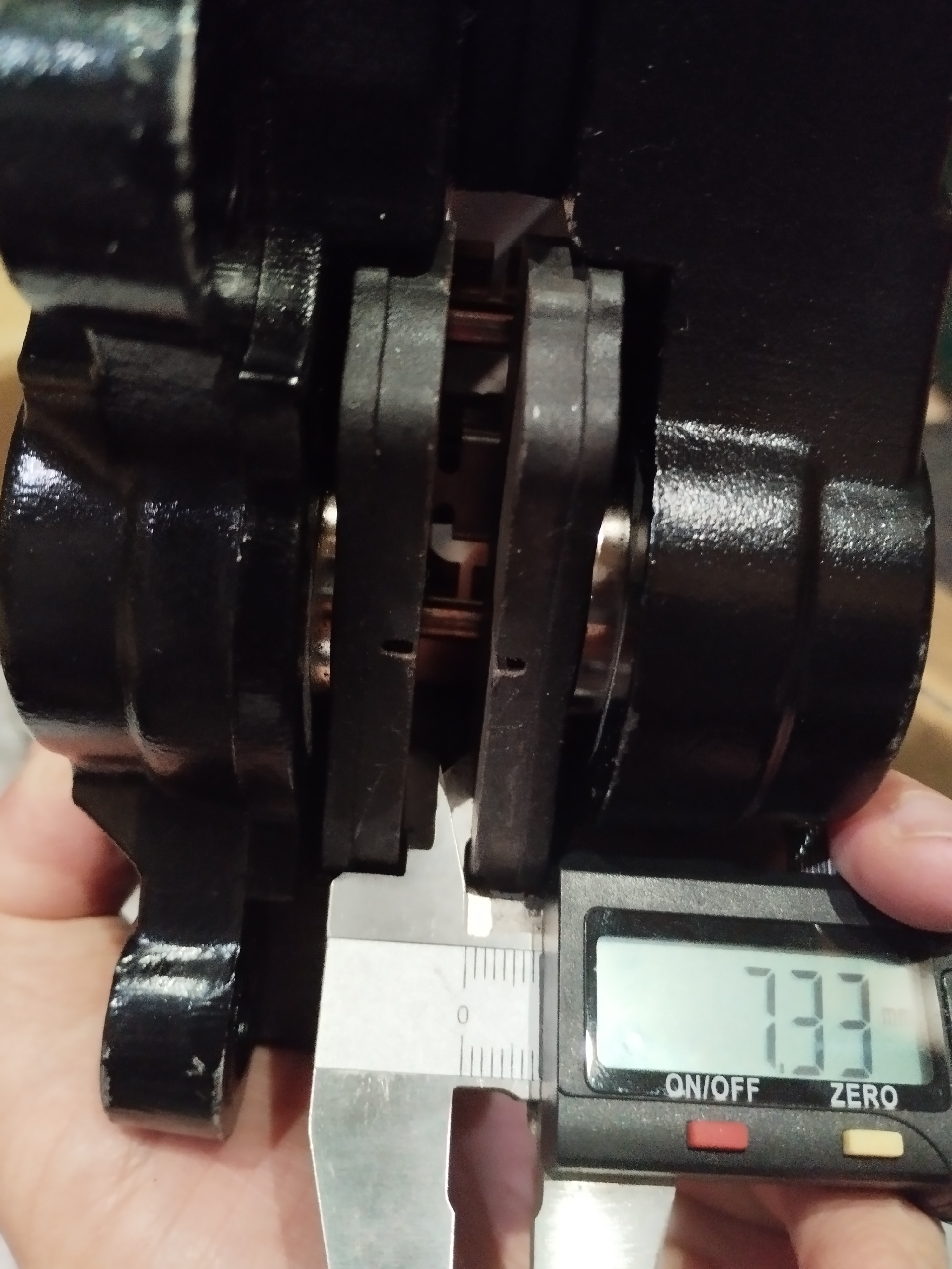 Die Scheiben sind 6mm dick, Platz dürfte dafür genug sein, habe ich mal an meiner Ersatz-Bremsanlage gemessen.