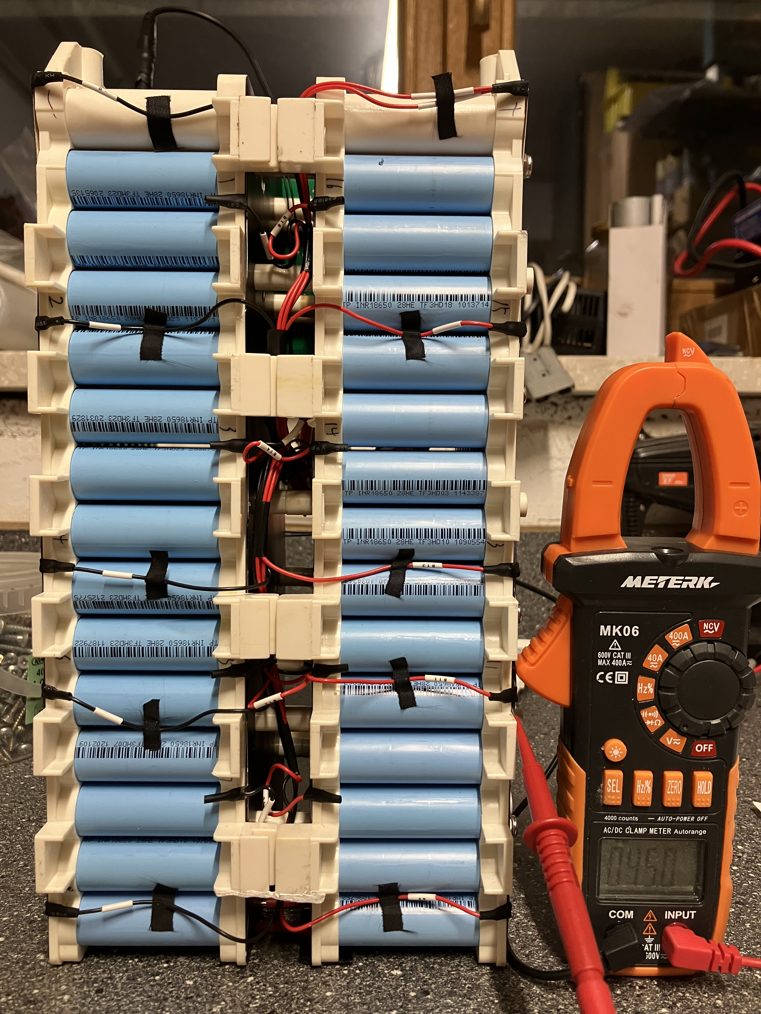Im offenen Zustand habe ich den Akku dann wieder eingesetzt, parallel zur Anschlussbuchse zur TS ein Voltmeter installiert und habe dann erneut gestartet. Ich konnte 69,9V messen.
