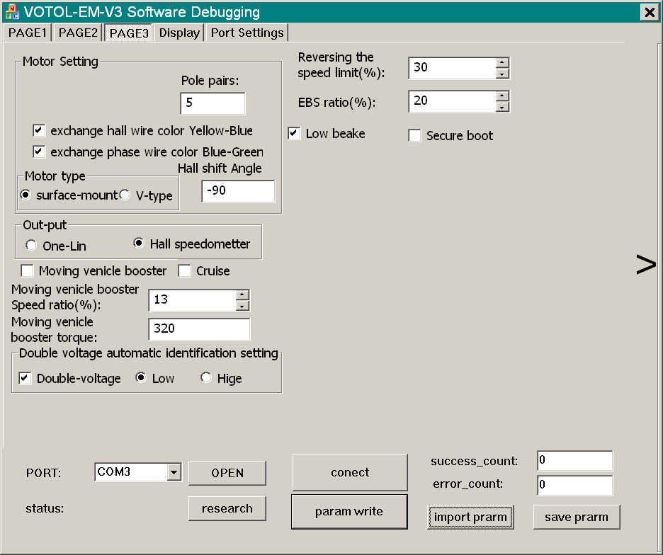 mein alter Votol-Controller hat den Geist aufgegeben, der neue ist eingebaut und muss programmiert werden. Ich suche nach der richtigen Konfiguration für unser Fahrzeug (Trixi 3.3 Dreirad baugleich, 60V, 1000W Motor) wie sie vom Hersteller kommt. Als ini-Datei oder als Screenshots.
