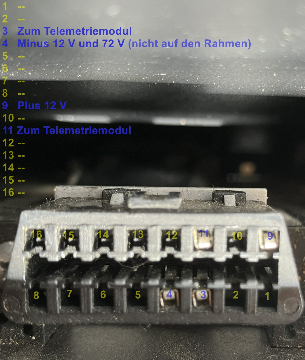 Vom Telemetriemodul gehen wieder zwei andere Leitungen zum Stecker vom Motor-Controller.