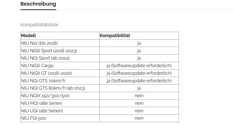 habe folgendes Problem. Habe mir letztes Jahr einen NIU GTS mit 2x60V 26Ah Akkus gekauft. Da ich jetzt noch eine Ersatzroller wollte habe ich mir noch zusätzlich einen NIU Cargo 6026 mit einem 60V 26Ah bei der Postenbörse geholt. Vorher habe ich mir hier im Forum bestätigen lassen, dass die Akkus beider Roller austauschbar sind.