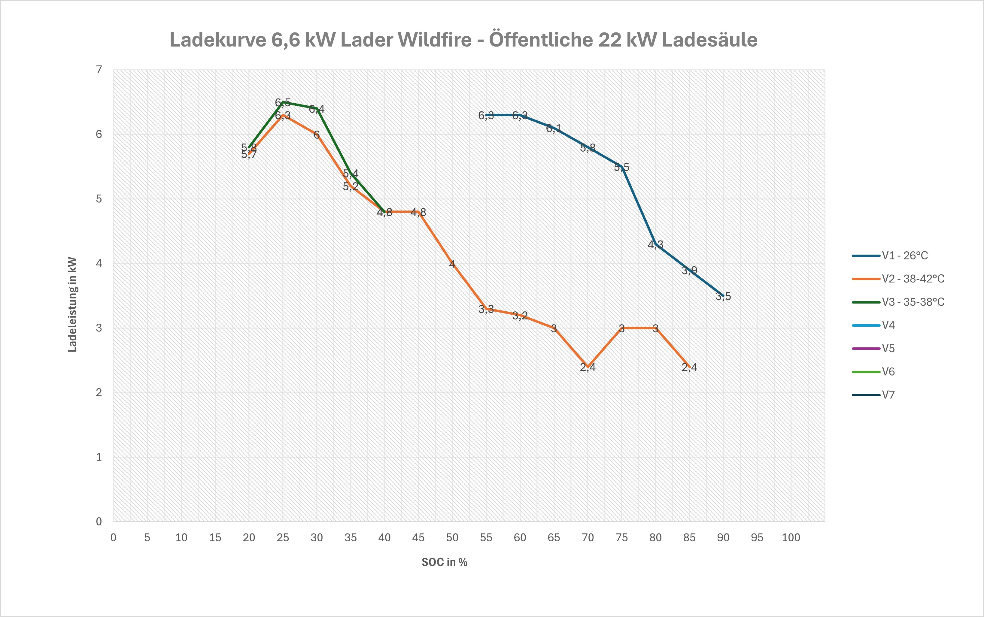 Damit dauert meine Tour meist gute 10 Stunden. Bei 3,3 kW ist das aber ziemlich viel Ladezeit.