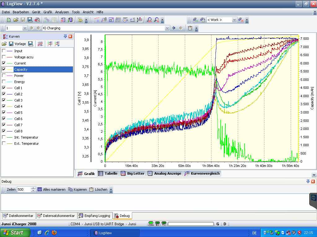 Der kann 8 Zellen in Serie Laden und ausgleichen, und das ganze kann am PC überwacht werden.