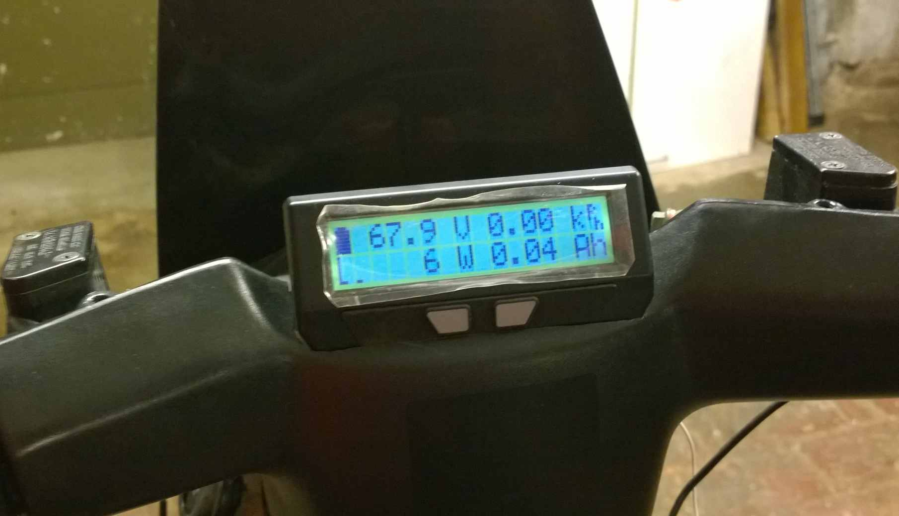 habe ich schon mal die ersten 6 vorhanden guten Zellen verbaut , den shunt verkabelt und den CycleAnalyst angeschlossen. Vorne quer passen 2 Zellen , in dem Loch habe ich den shunt versenkt. Der CycleAnalyst kann jetzt schon Spannung,Strom Laden/Entladen Ah anzeigen.