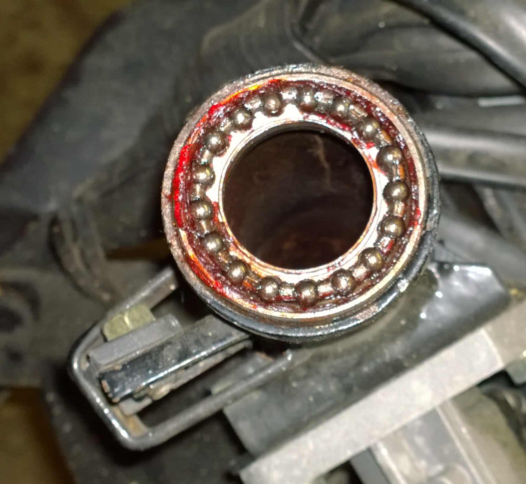 Also Fettmangel war es hier nicht Aber die über 10.000km habe hier doch ihre Spuren hinterlassen. Suche jetzt mal nach neuen Lagern, am liebsten Kegelrollenlager.