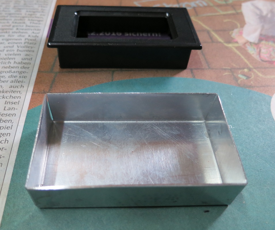 Für das Gehäuse braucht man in kleines Blech aus Eisen, Aluminium, Zink oder Kupfer. Einen Blick in den Schrottcontainer vom Kemptner könnte erfolgreich sein.