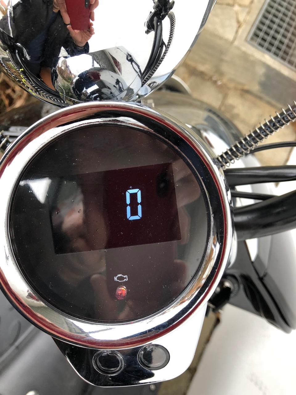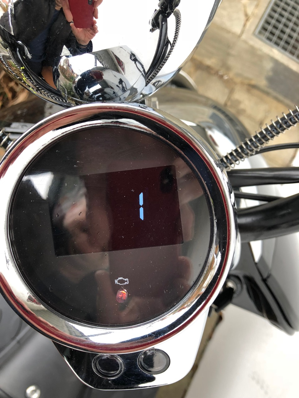 So nach ein paar Fahrtests habe ich es rausgefunden. Das kleine Motor (Engine) Symbol mit orangeroter Anzeige blink dann wenn man eine oder beide Bremsen betätigt. Es wird dadurch signalisiert das der Motor abgeschaltet ist. Man kann dann zwar Gas geben aber der Motor wird nicht angetrieben.