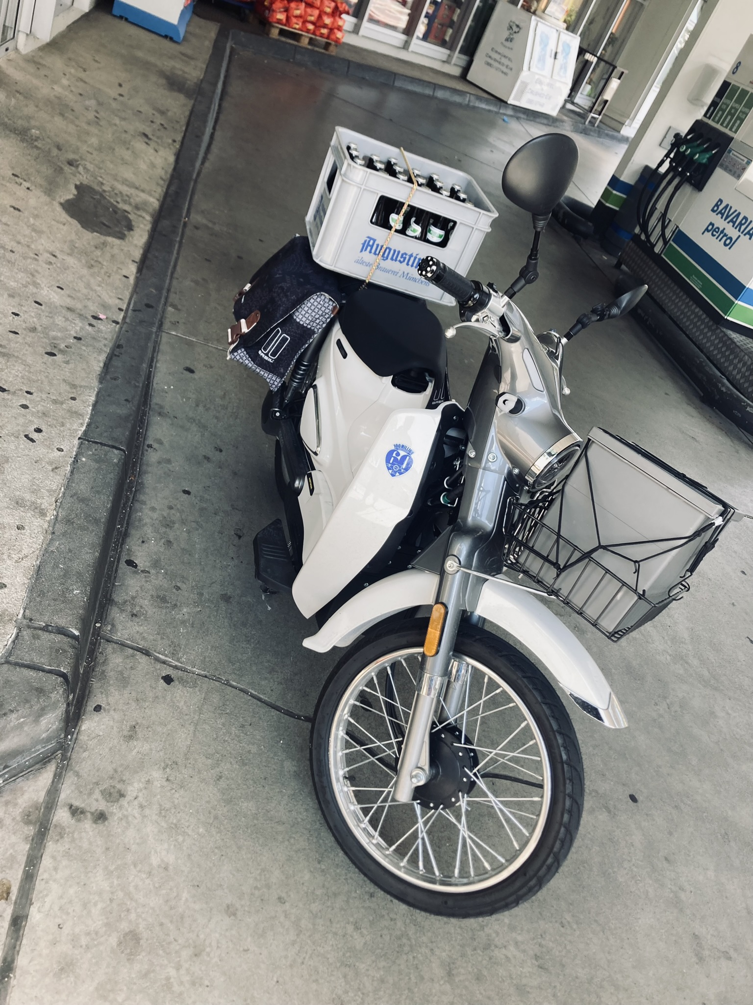 Die Verarbeitung ist in Ordnung, nicht besonders hochwertig aber robust. Was auf jeden Fall fehlt ist Stauraum. Glücklicherweise lässt sich der Gepäckträger einer Honda C50 montieren und somit ein Körbchen.
