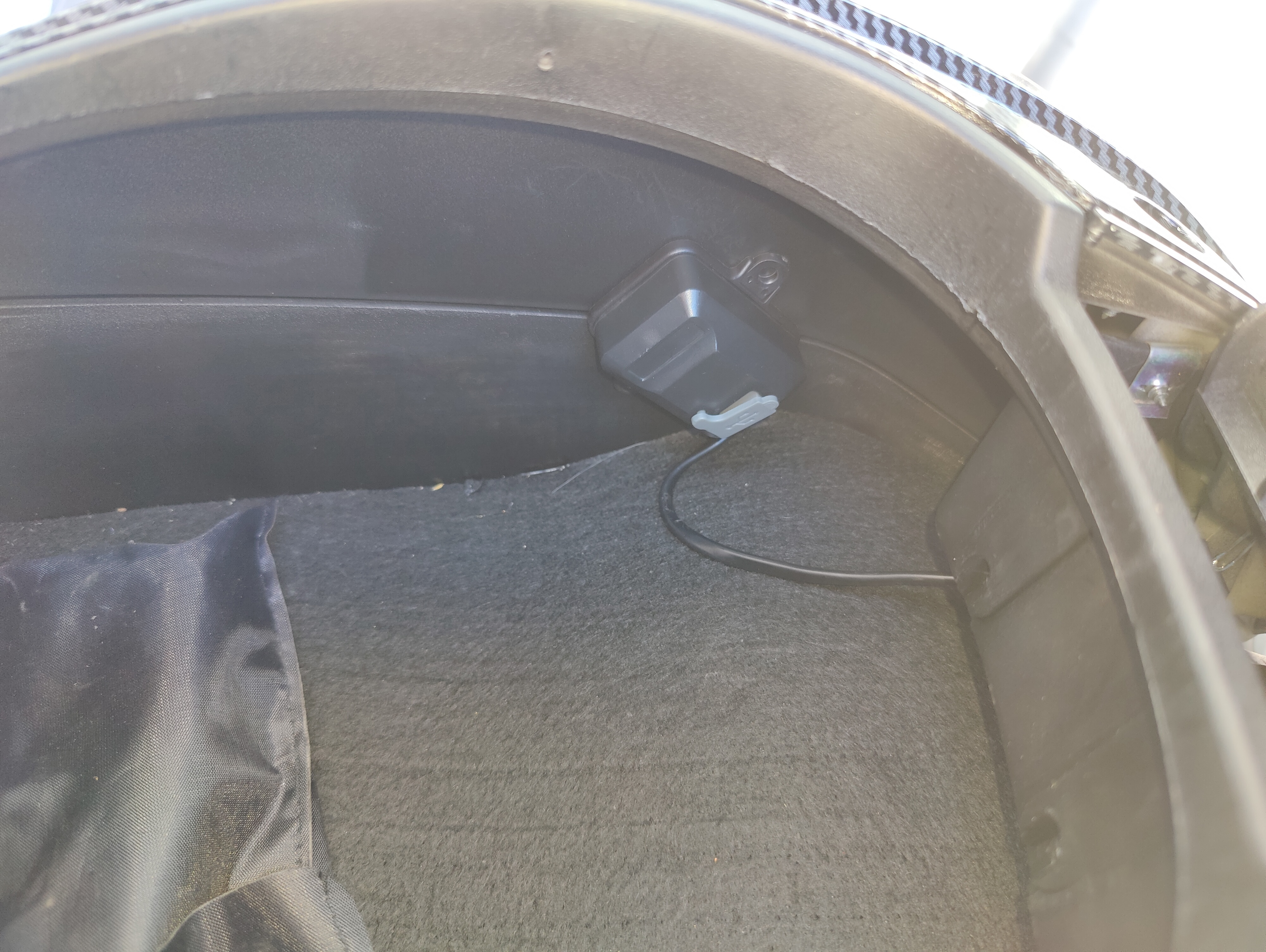 Es stellt sich heraus, dass das "Problem" mit einem Inbusschlüssel, einer Zage und optionalen doppelseitigen Klebeband binnen Minuten zu beheben ist: der USB Anschluss muss versetzt werden. Zwei Schrauben mit Muttern (deshalb die Zange^^) müssen gelöst werden. Dann kann der USB-Anschluss einfach mit doppelseitigen Klebeband an die Seite gesetzt werden. Hält. Passt.