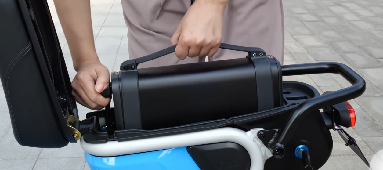 Was interessant ist, ist wie der Akku im Roller sitzt.