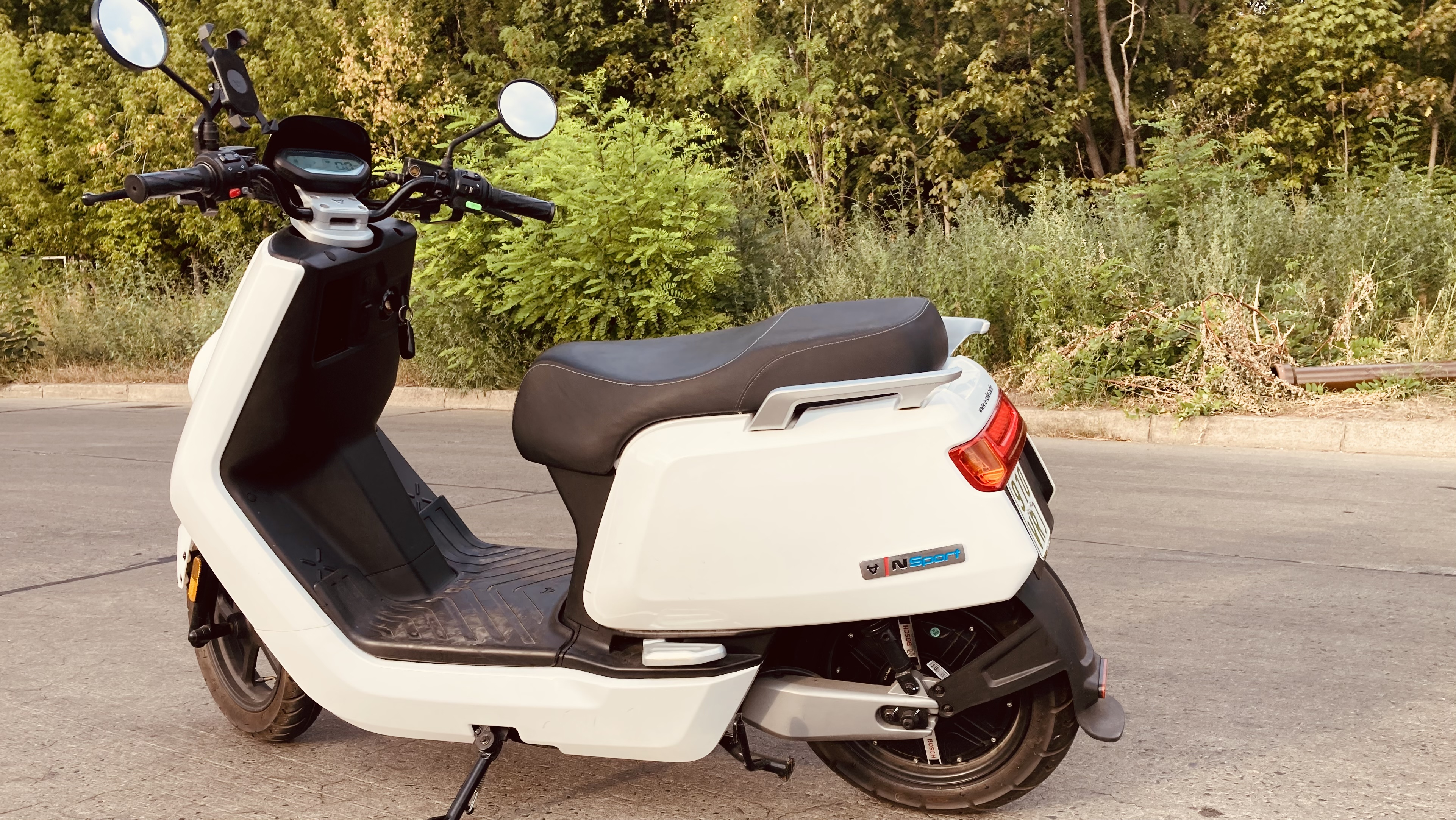 hab breitere Spiegel dran und das große NIU-Topcase drauf.