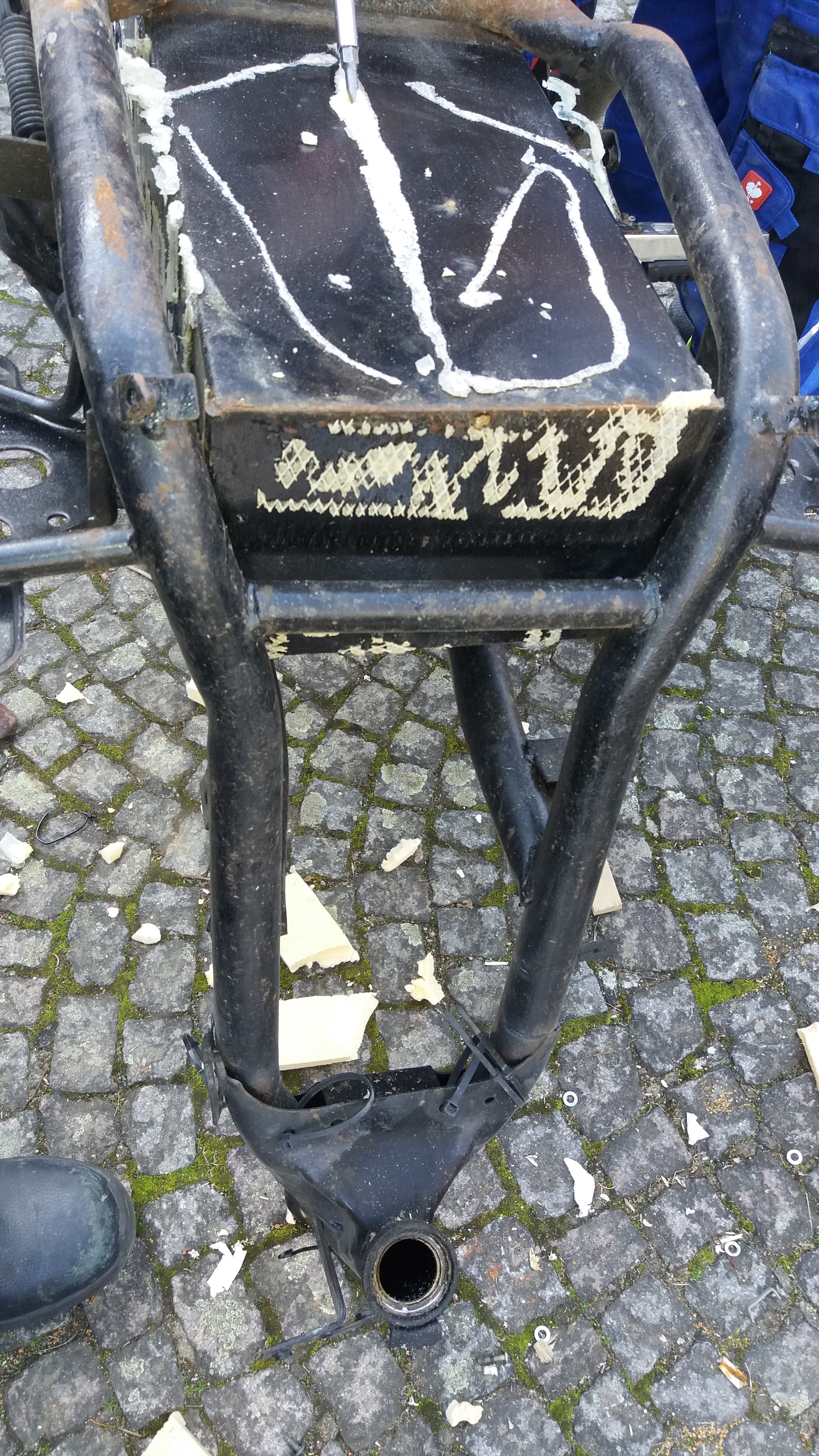 Für die Nachwelt habe ich noch ein paar Bilder vom Rahmen nach 7 durchgefahrenen Wintern gemacht.