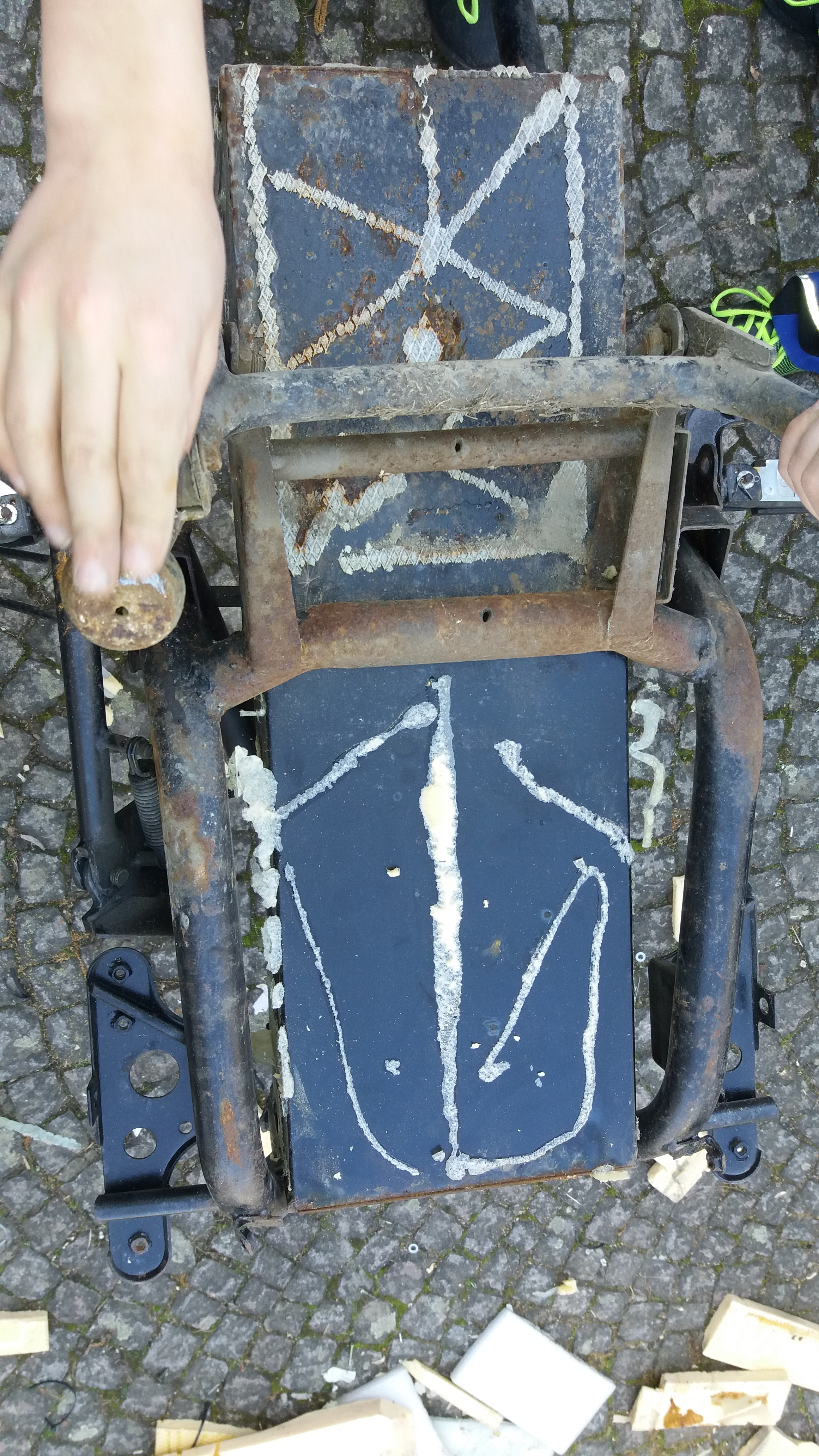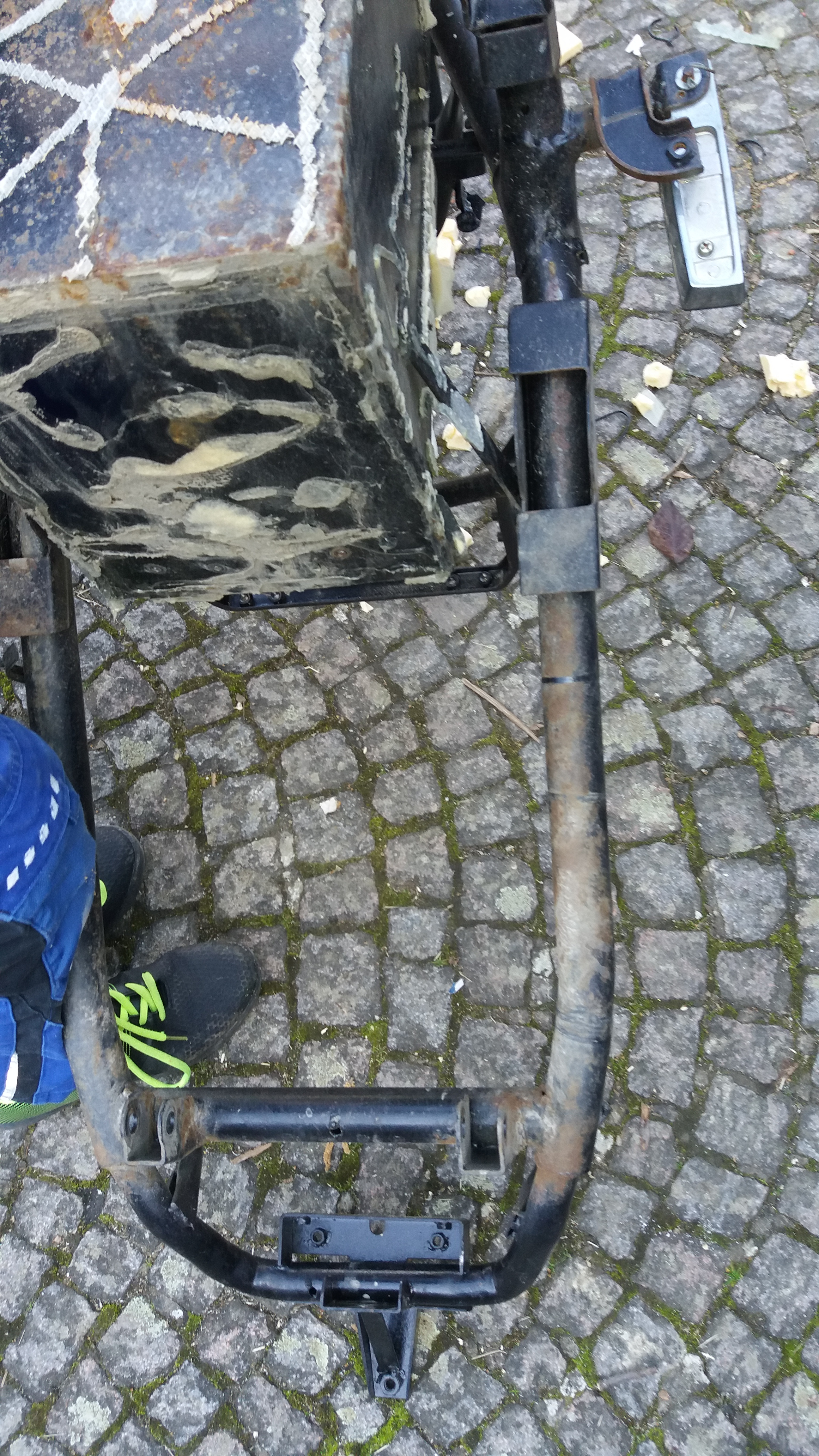 Ja, so und noch schlimmer sieht mein altes Thunder-Fury Gerippe nach ähnlich vielen durchfahrenen Wintern auch aus. Jetzt warte ich noch auf die Nachrüst-AHK von MrDotCom für unser Auto, dann kommt das Gerippe auf den Schrottplatz...