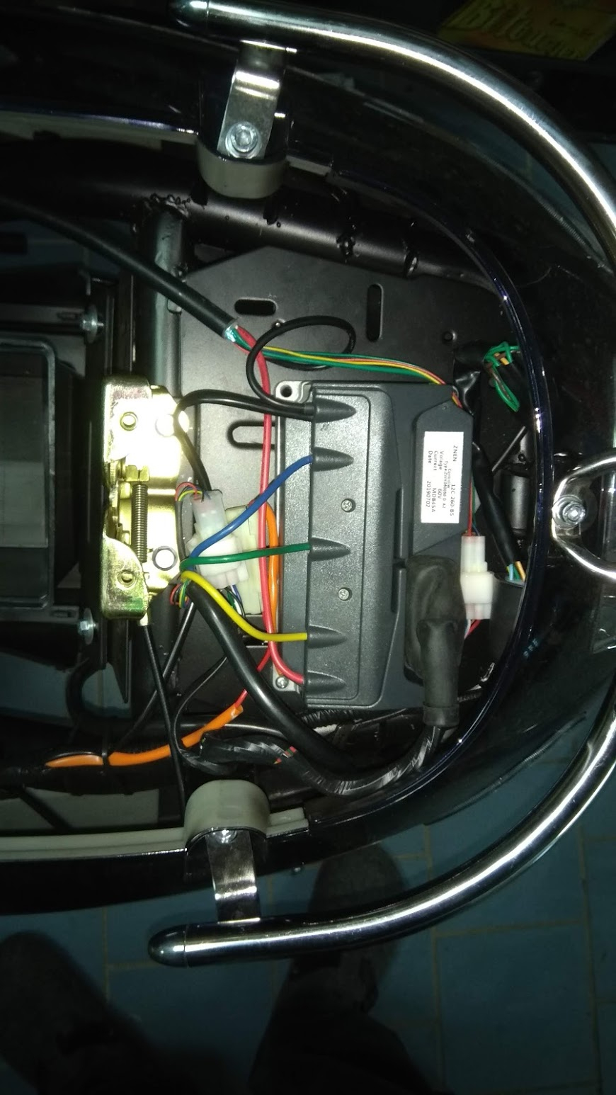 Reparaturanleitung: Batterie raus. Mit 4 mal Schlüsselweite 10mm die Sitzbank abschrauben. Controller Stecker abziehen und wieder aufstecken. Ich hab dann noch bei gezogener linker Bremse 4 mal hintereinander ein und ausgeschaltet, um den Fehlerspeicher zu löschen. Ob Letzteres wirklich entscheidend war, kann ich nicht sagen. Ich werde meinem Bordwerkzeug einen 10er Rohrschlüssel beifügen, so dass ich mir zukünftig auch unterwegs helfen kann.