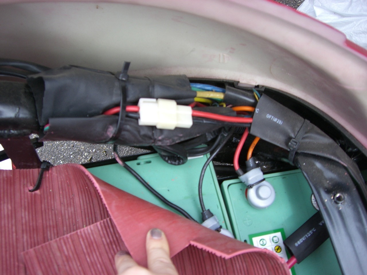 Hier noch die Bilder von den Kabeln unter der Sitzbank. Vielleicht findet sich dort das vom Chinesen beschriebene Drähtelein, wär ja fein.