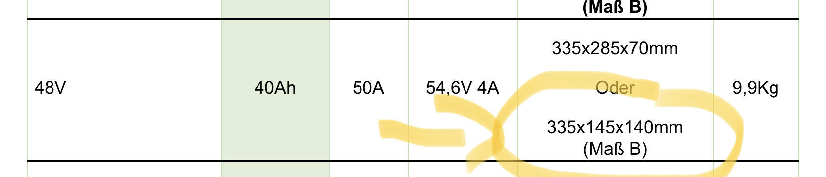 Ansonsten ist natürlich ein auf 51/52 Volt (14s) konfektionierte Akku interessanter, als ein 47/48 Volt (13s) Akku, weil der Roller dann länger die Sollgeschwindigkeit halten kann. Ein kleiner 14s-Lithium Akku mit z. B. 25Ah, der volle 60Ampere liefern kann, wäre auch möglich, wenn eine Reichweite von 30-35 km ausreichen würde. Meist (und insbesondere bei Blei) liefern aber größere Akkus den Strom bereitwilliger.