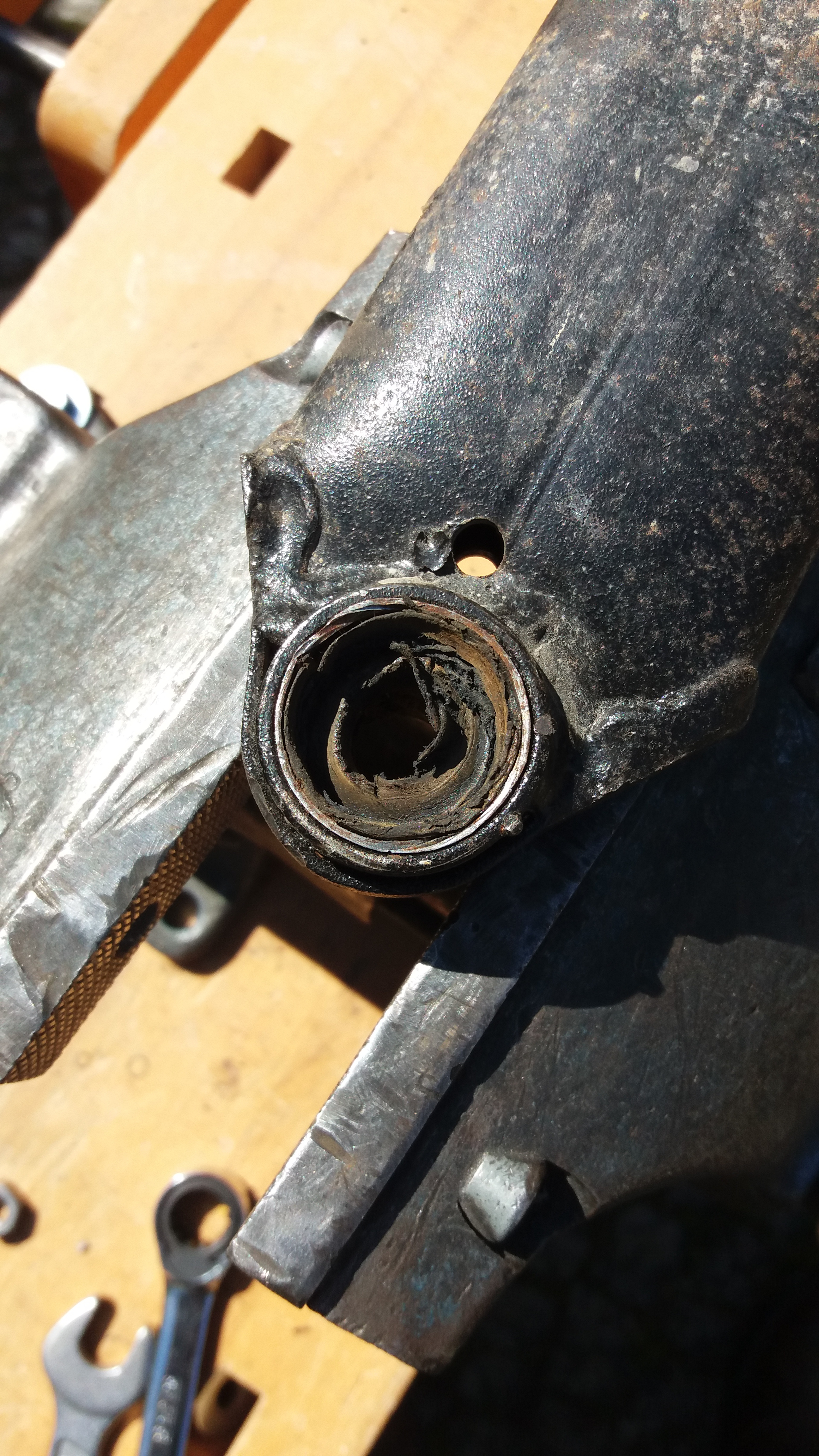 Siehe da , eines der Gummilager der Schwinge ist gerissen. :o