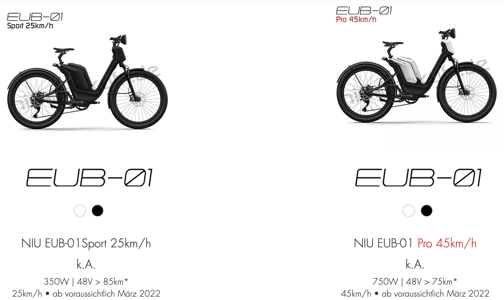 Niu EUB dürft jetzt ca. März 2022 kommen in 25 km/h und 45 km/h