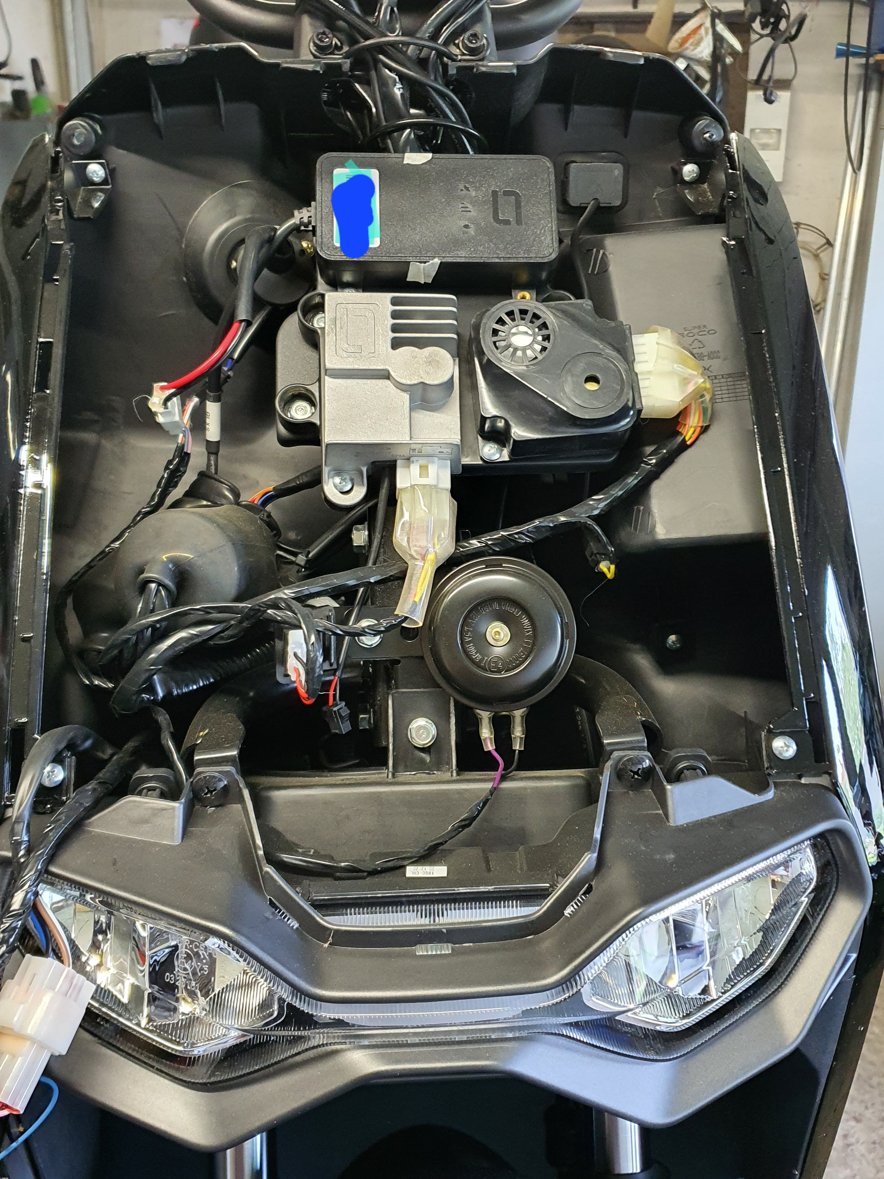 Bei der CPX ist das Modul unter der vorderen Verkleidung über dem Scheinwerfer.