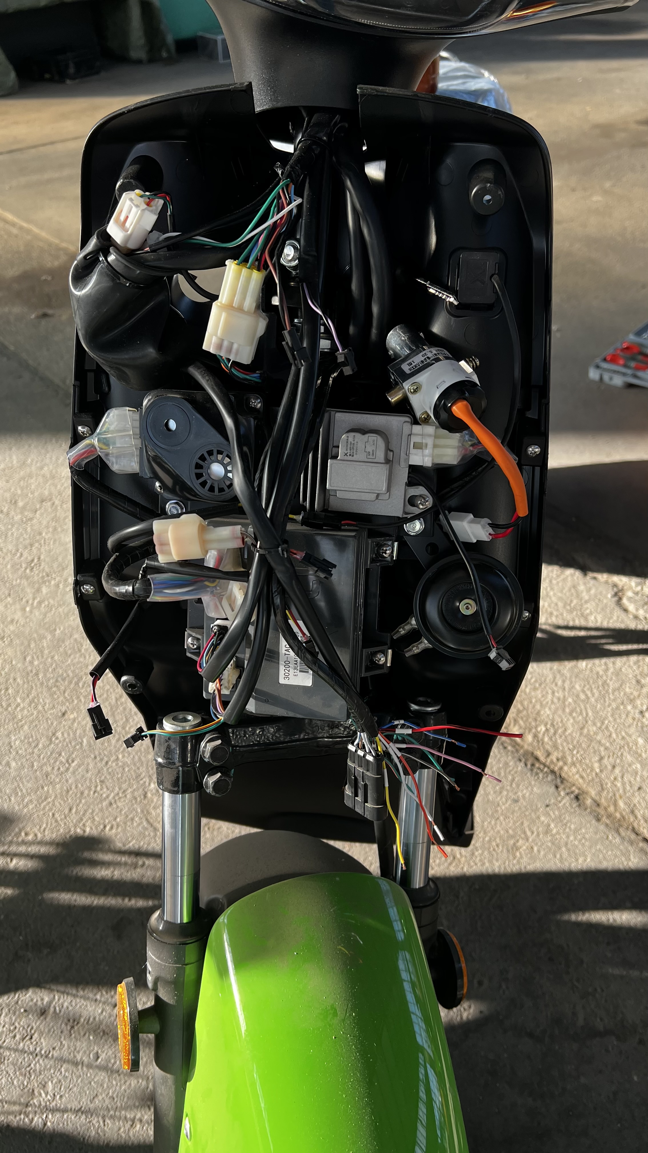 Üblich im Elektrofahrzeug wären nur zwei Kabel in das Zünsschloss, die es Kontaktiert um das Fahrzeug einzuschalten und eben der Seilzug, über den bei Linksdrehung des Schlüssels, die Sitzbank mechanisch entriegelt werden kann.