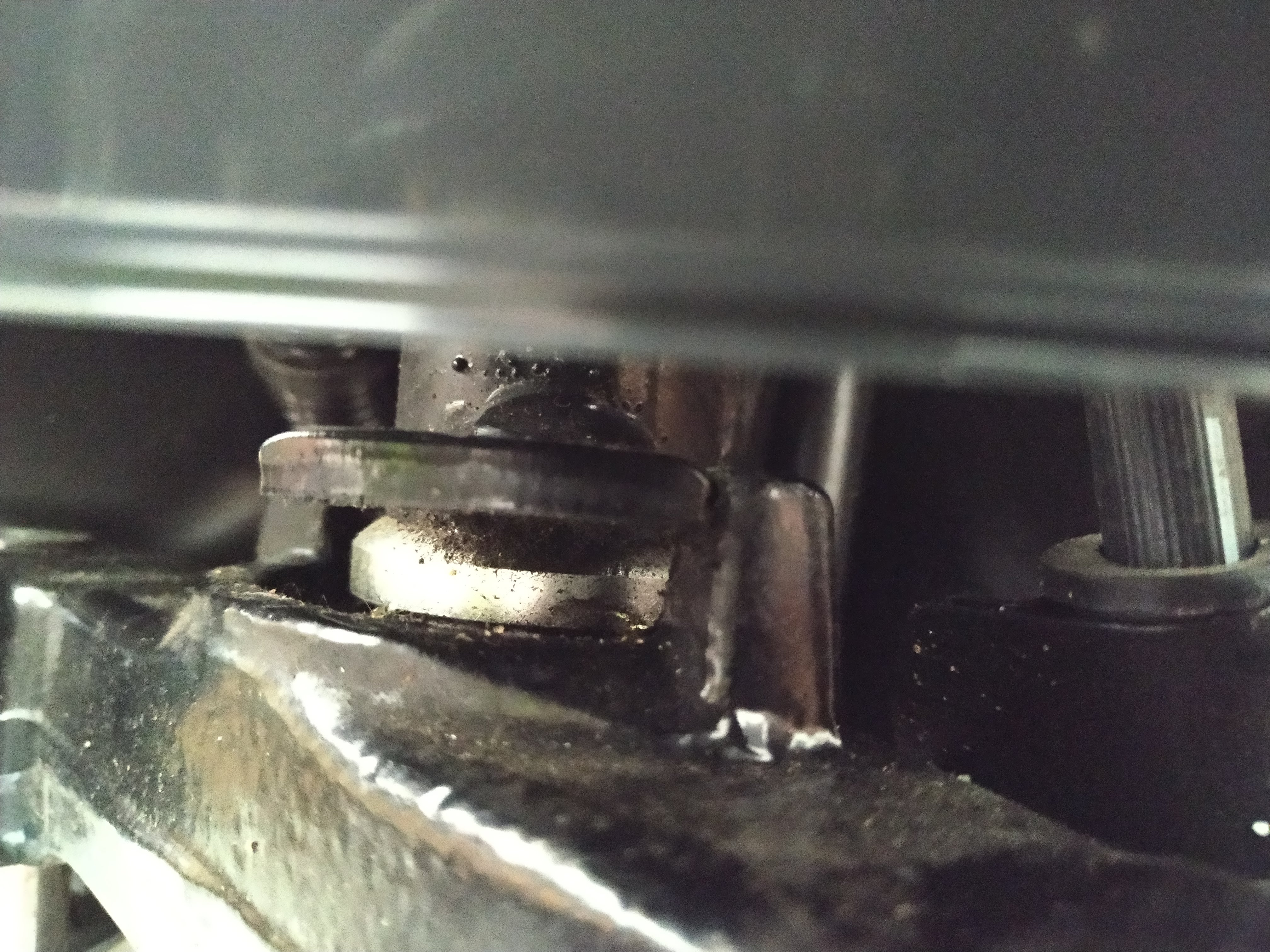 So sieht das bei mir aus. Die horizontale Platte schlägt über ihre gesamte Stärke an die Zapfen der Gabelbrücke an.