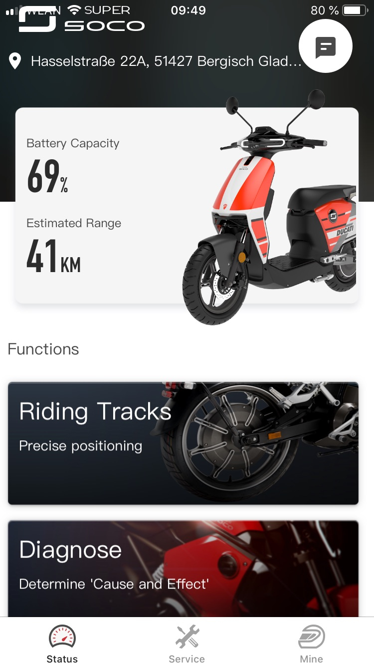 Die Reichweite ist doch in Ordnung.Mibo hat geschrieben: ↑Sa 15. Feb 2020, 10:07Habe gestern meine Super Soco Cux abgeholt. Bin jetzt etwas irritiert, weil ich erst 13 km gefahren bin, und der Akku schon auf 69 % runter ist. Ich bin zwar die ganze Zeit in Stufe 3 und fast immer im Vollgas Modus gefahren, halte den Verbrauch doch für recht hoch - laut App erreiche ich so eine Reichweite von 41 km. Das ist doch ziemlich enttäuschend, zumal ich mit ca. 75 kg nicht besonders schwer bin. Mein Händler hat zwar gesagt, der Akku würde erst nach 2-3 Ladungen seine volle Leistung bringen, aber für’s erste bin ich von der Reichweite enttäuscht. Wie waren eure Erfahrungen mit der ersten Akku Ladung ?