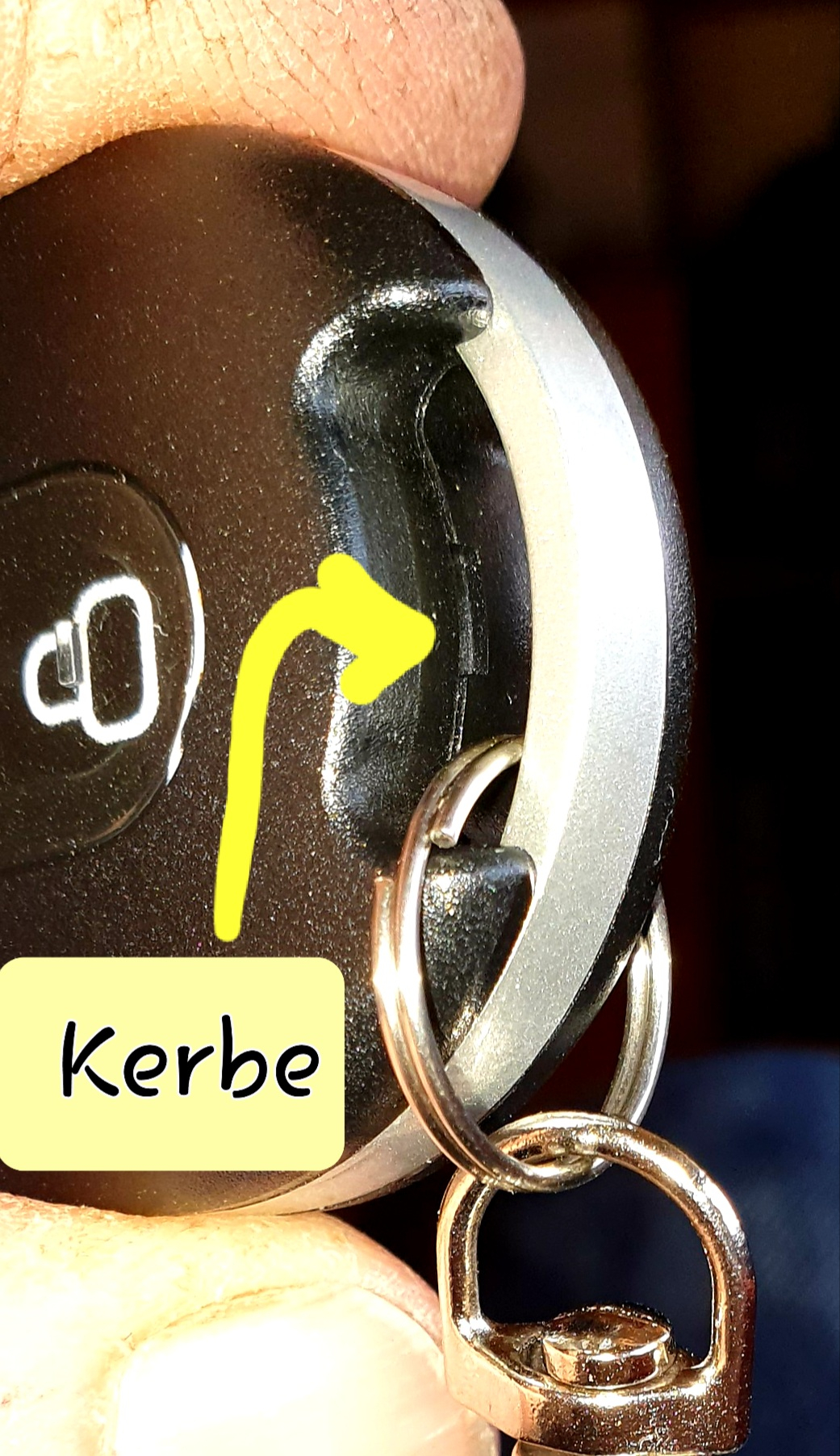 Die einzige Kerbe, die ich sehe, liegt hier, aber wenn ich daran heble, wackelt die Seite mit den Bedientasten, da lass ich es lieber, bevor mir die Elektronik...