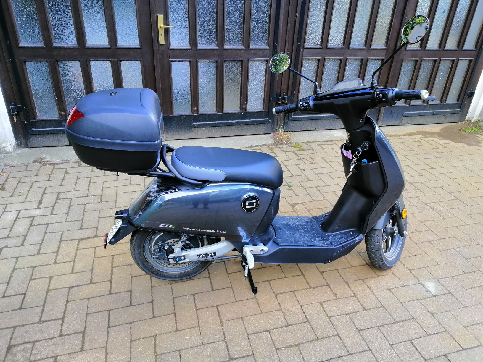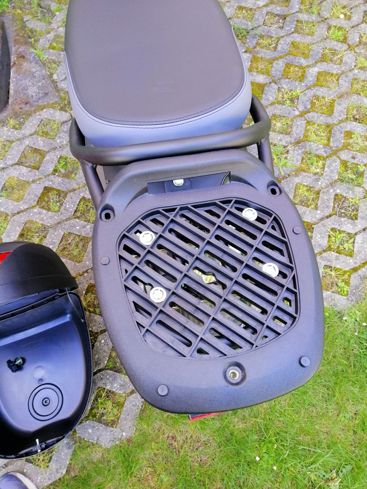 Ich habe leider vor einer Woche den Original-Box in china bestellt. Und diesen gab es anscheinend nur in weiß. Mal sehen, wie sch** das auf dem grauen Roller aussehen wird.