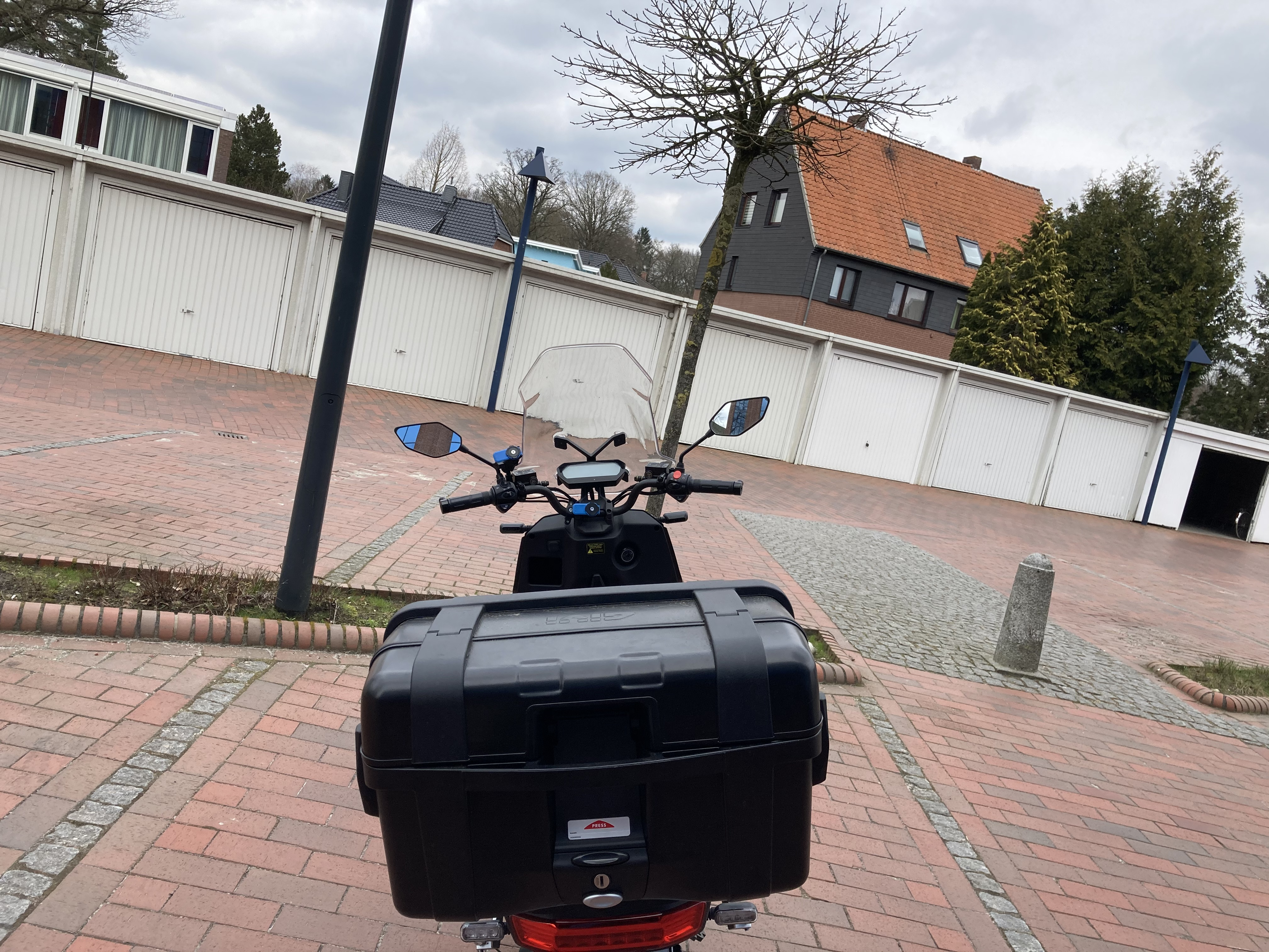 Über den Winter habe ich die ersten knapp 1.000 km zusammengestromert. Und habe mittlerweile ein Topcase installiert.  Das ist ein Givi Trekker 46L. Meiner Meinung nach passt er optisch sehr gut zum CPX.